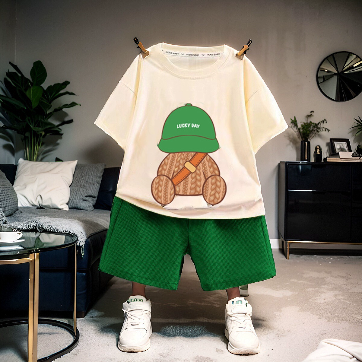 | nameOriginal | Children's summer casual suit short-sleeved shorts two-piece set children's loose clothes boys waffle baby summer clothes |