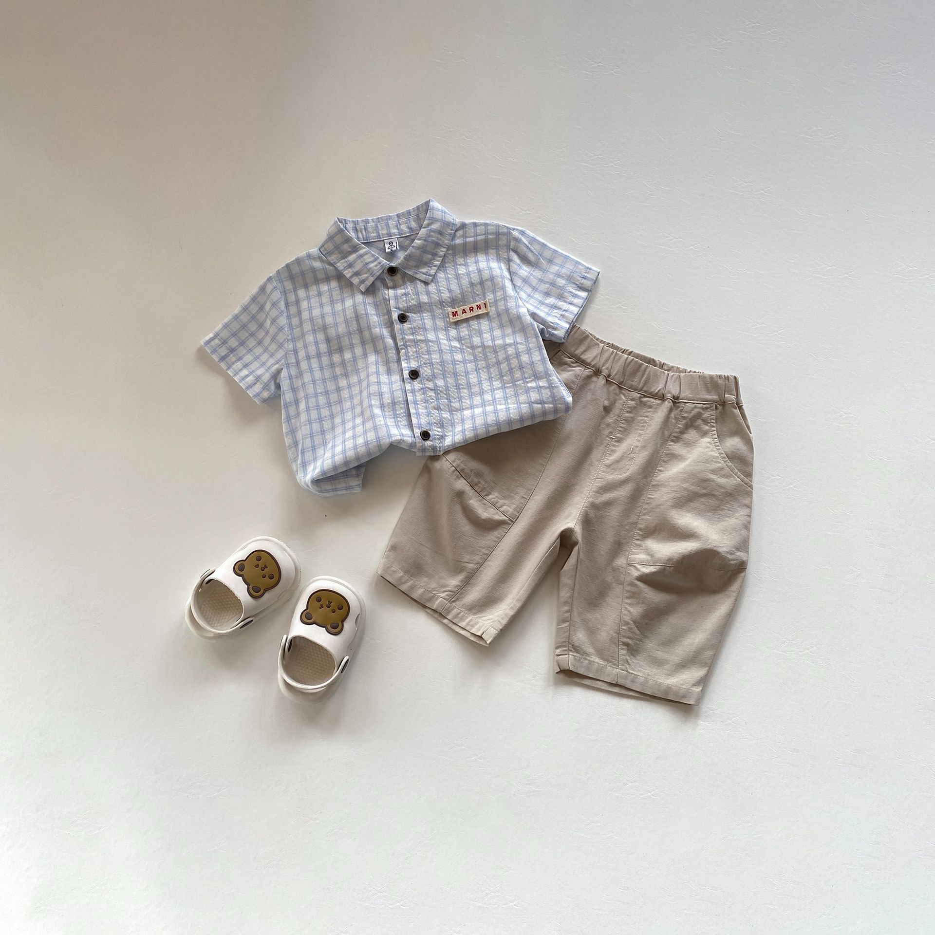 | nameOriginal | Children's Summer Dress Boys Short-sleeved Plaid Shirt 2024 Summer New Style Shirt Korean Style Fresh Top for Boys and Babies |