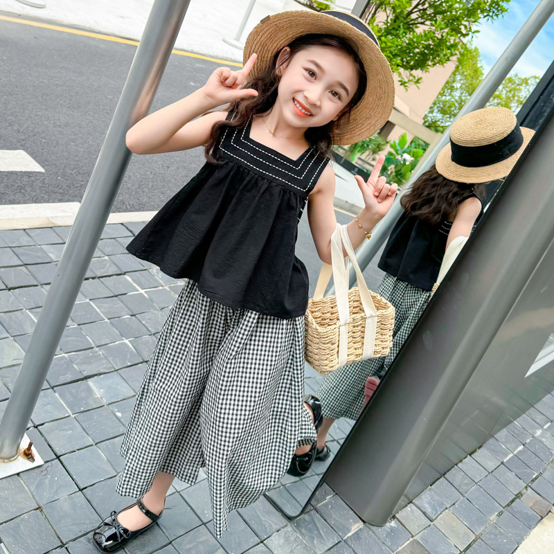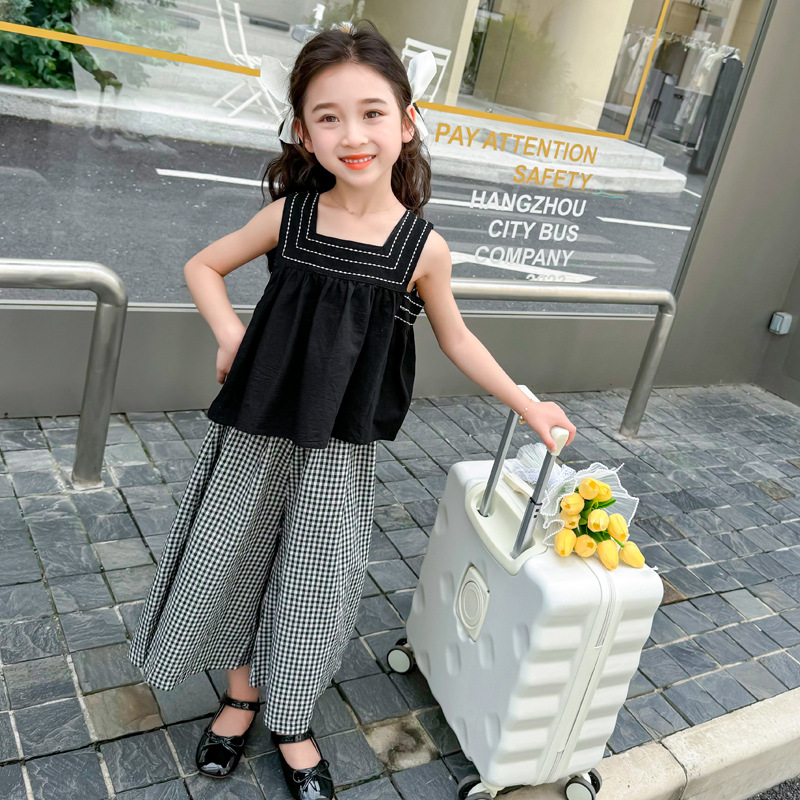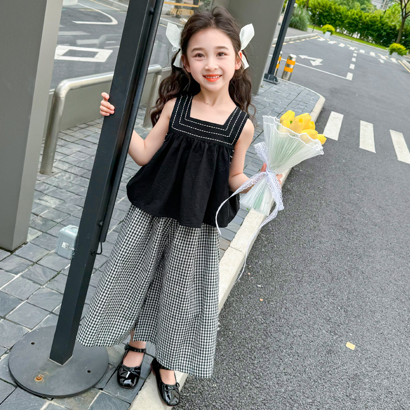Children's Summer Girls' Vest Sling suit 2024 Summer New Baby's Fashionable Wide-leg Pants Two-piece Set