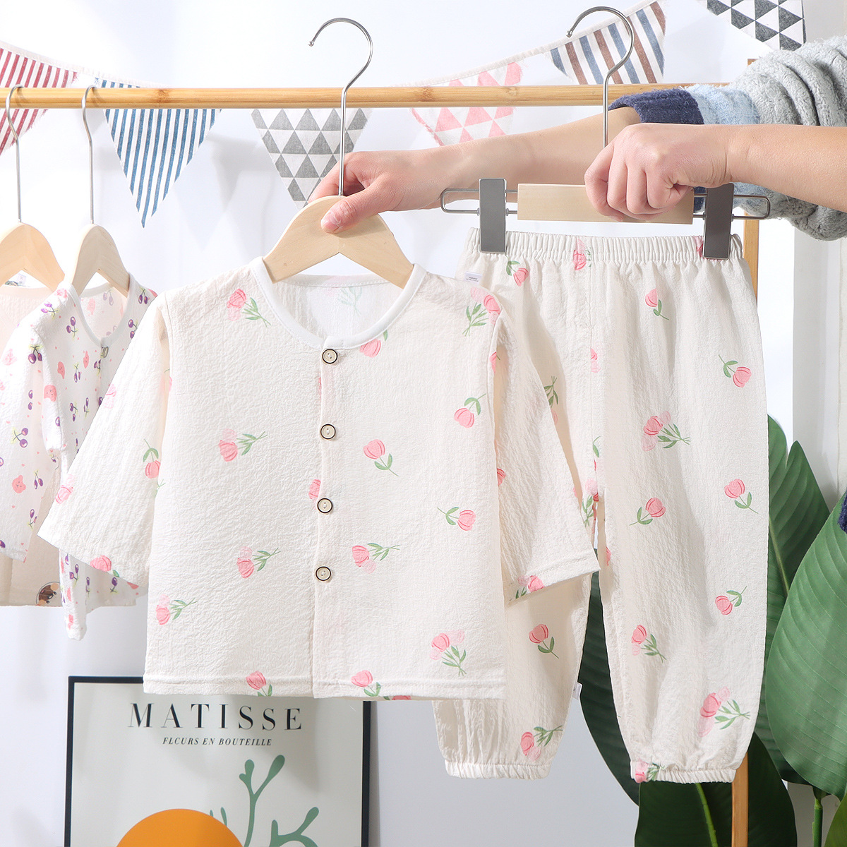 | nameOriginal | Children's summer homewear baby bubble pajamas boys and girls homewear boys and girls baby air conditioning clothes cropped suit |