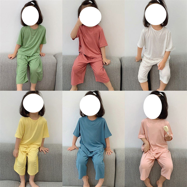 Children’s Summer Modal Air-Conditioned Clothing Summer Thin Girl’s Boy’s Baby’s Short-Sleeved Pajamas Home Clothes 0105