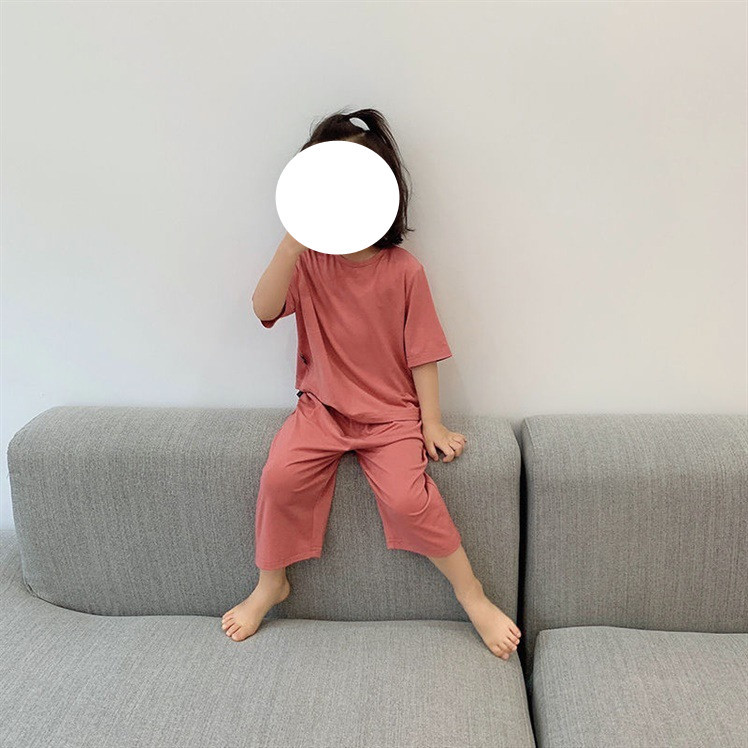 Children's Summer Modal Air-Conditioned Clothing Summer Thin Girl's Boy's Baby's Short-Sleeved Pajamas Home Clothes 0105