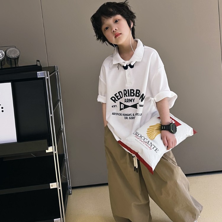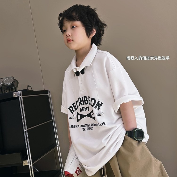 Children’s summer polo shirt Boys’ short-sleeved T-shirt summer thin 2023 new medium and big children boys’ cool handsome trendy