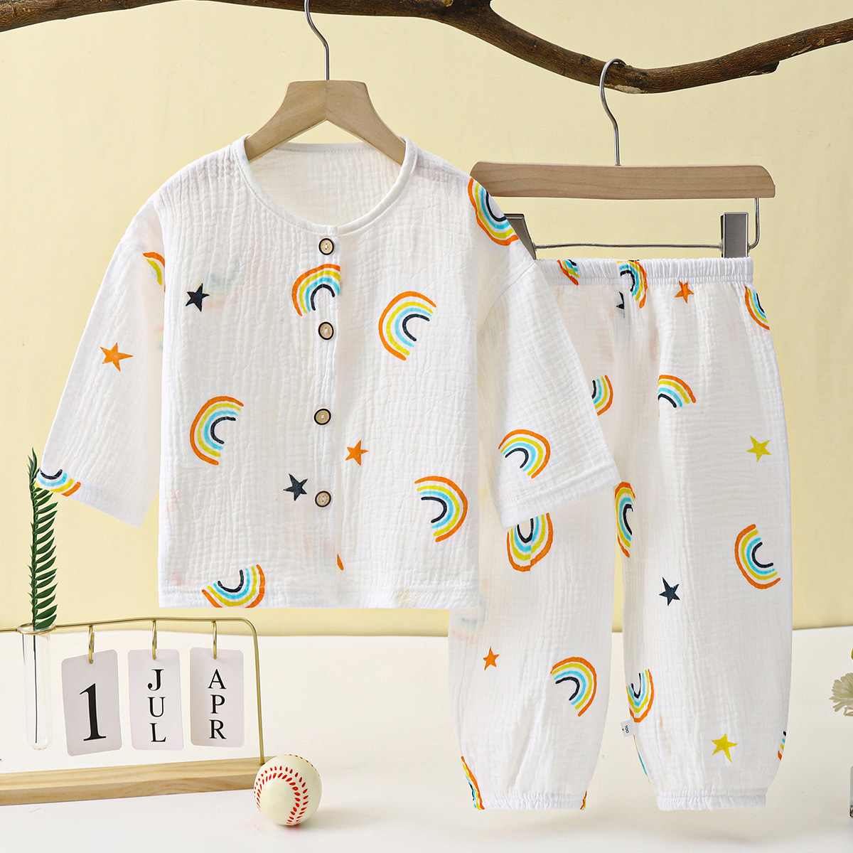 | nameOriginal | Children's Summer Pure Cotton Double-Layer Soft Gauze Home Clothes Spring and Summer Thin Baby Pajamas Long-Sleeved Air-Conditioned Clothes for Boys and Girls |
