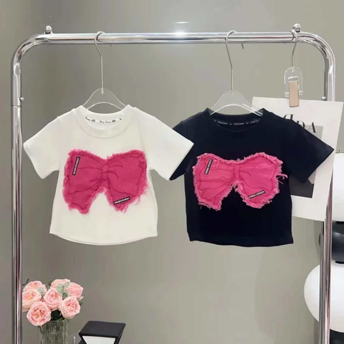 Children’s summer short-sleeved T-shirt new fashion casual versatile girls bow short-sleeved top tide 0088A060