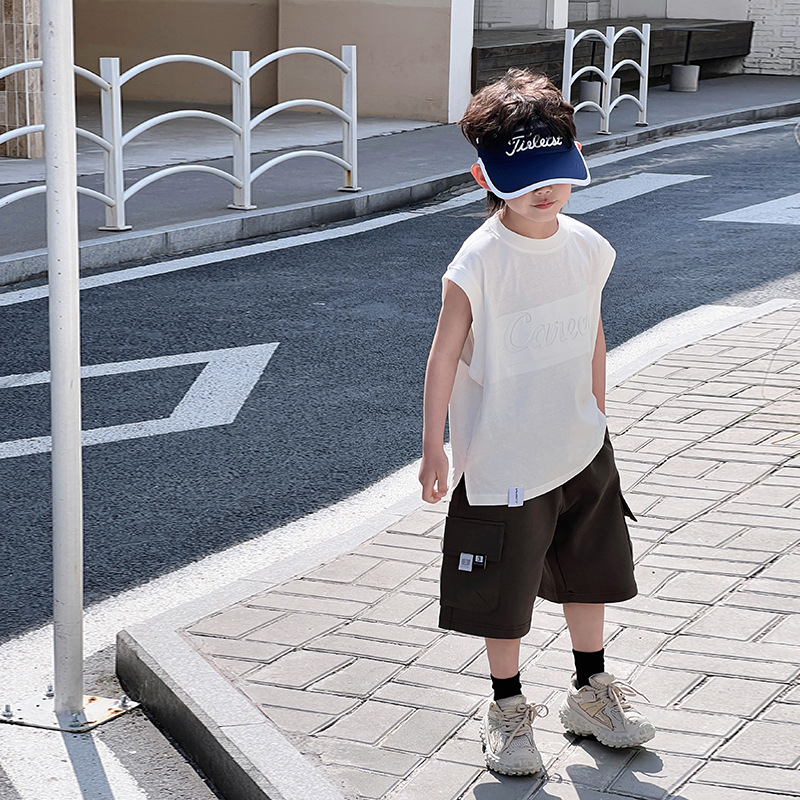 Children's Summer Sleeveless Vest Boys Short-sleeved T-shirt Summer 2024 New Boys Summer Fried Street Fashion Cool Top 5