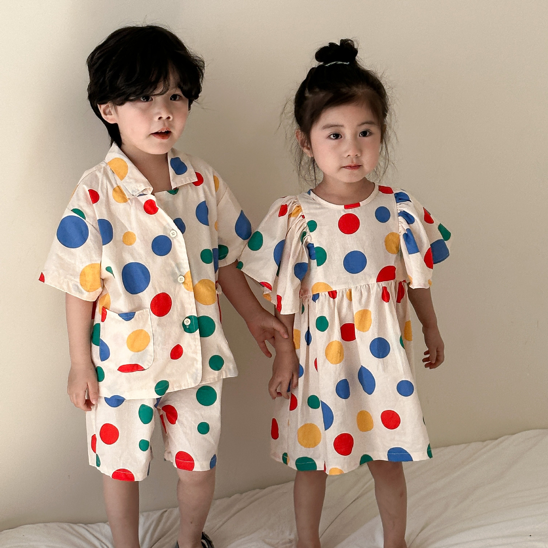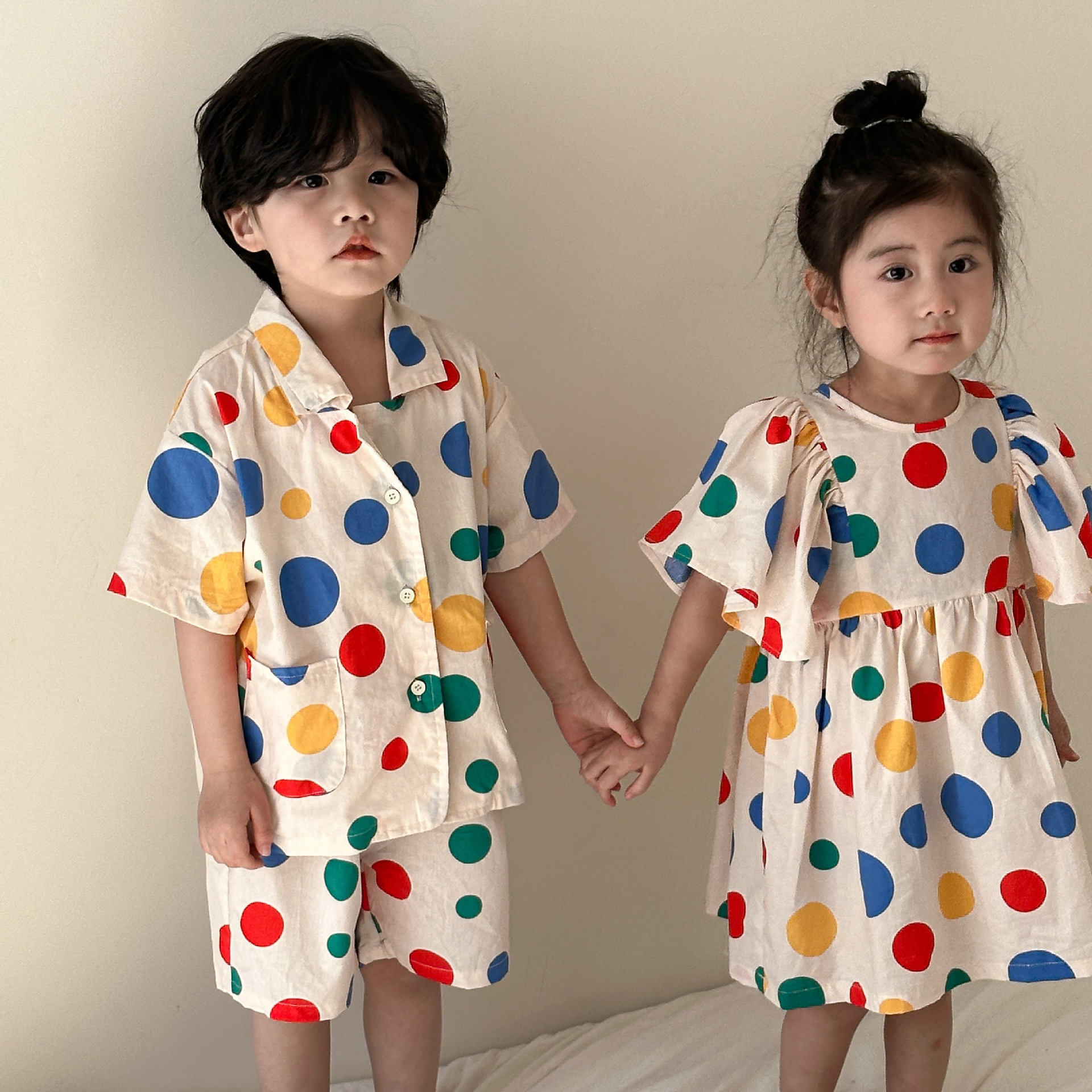 | nameOriginal | Children's summer suit boys 2024 New Baby Western Style Polka Dot Cotton girls dress brothers and sisters clothes |