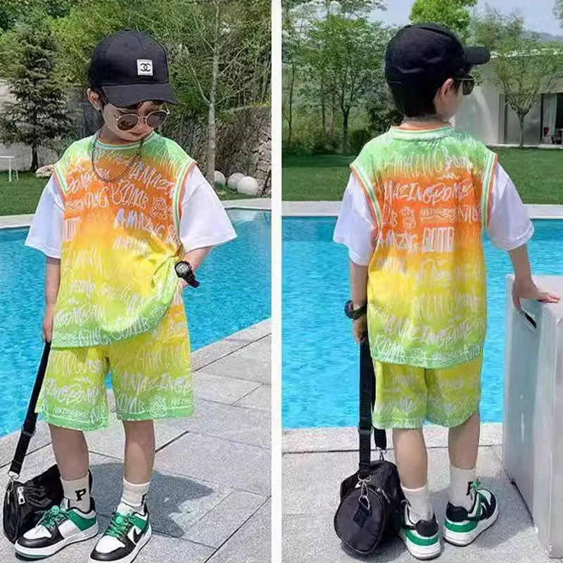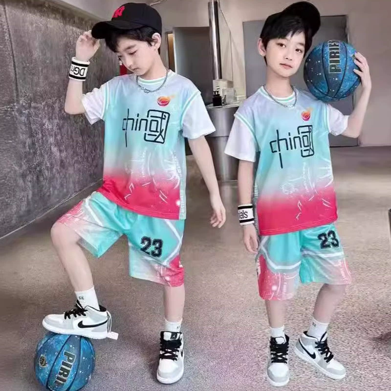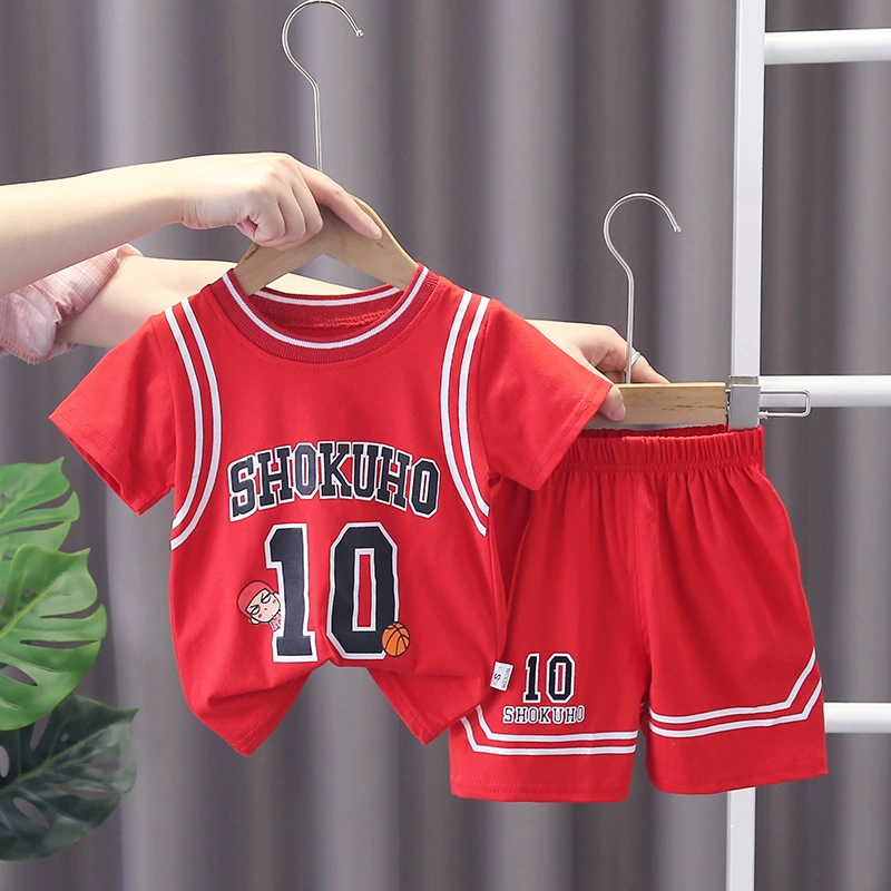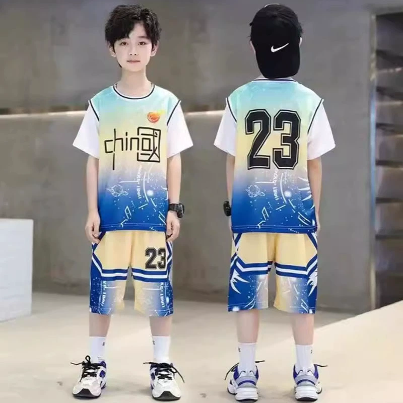 | nameOriginal | Children's summer suit, boy's sports basketball suit, boy's handsome thin fake two-piece short-sleeved quick-drying suit |