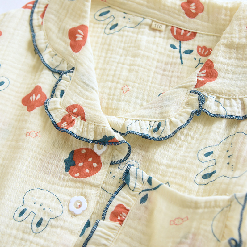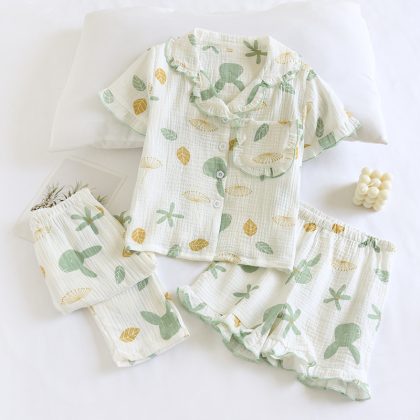 Children’s Summer Thin Cotton Gauze Pajamas Set Three-Piece Small Fresh Parent-Child Short-Sleeved Trousers Shorts Home Clothes
