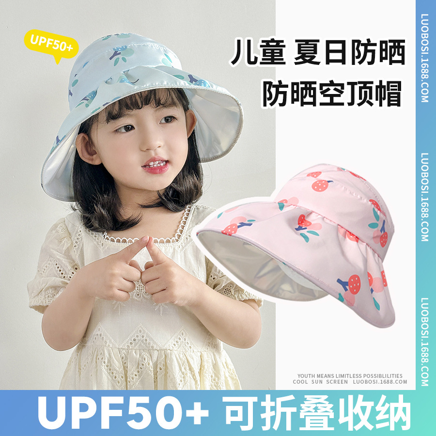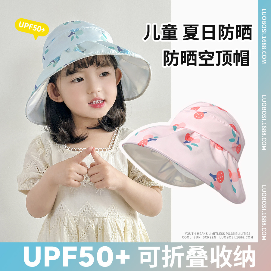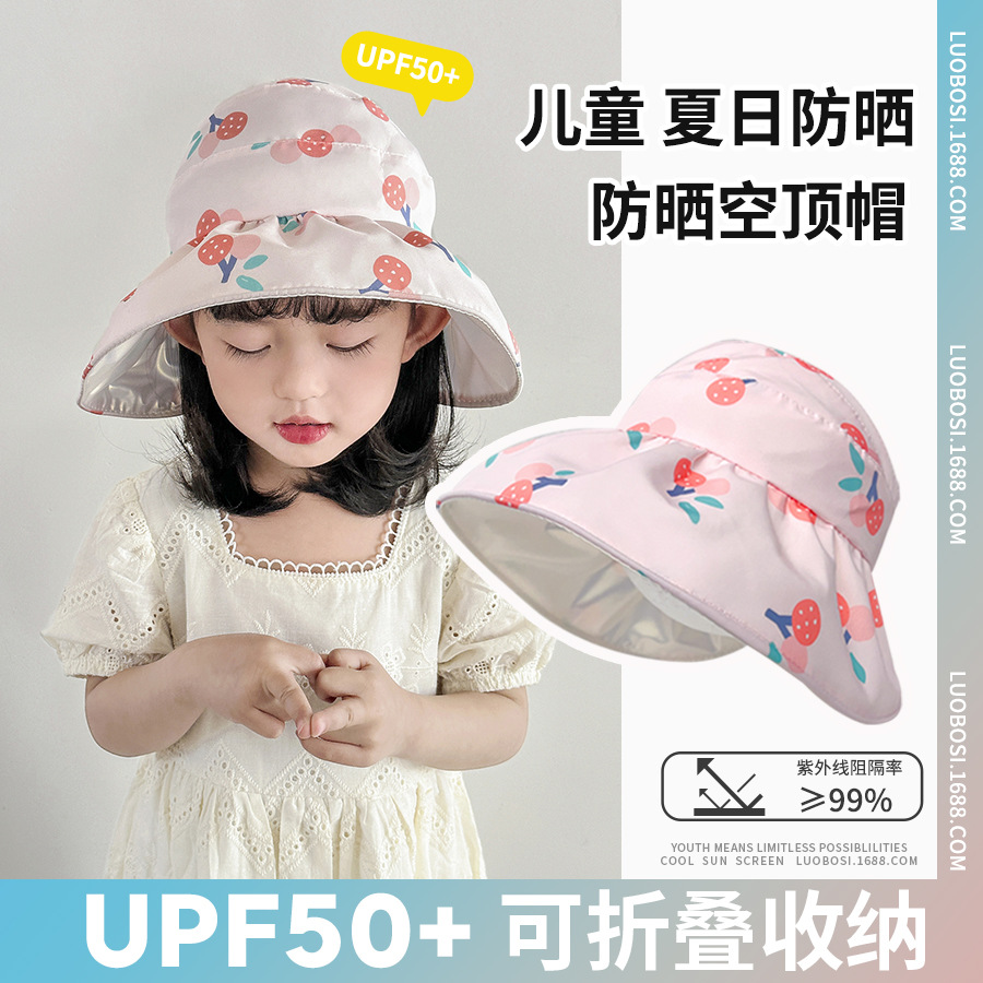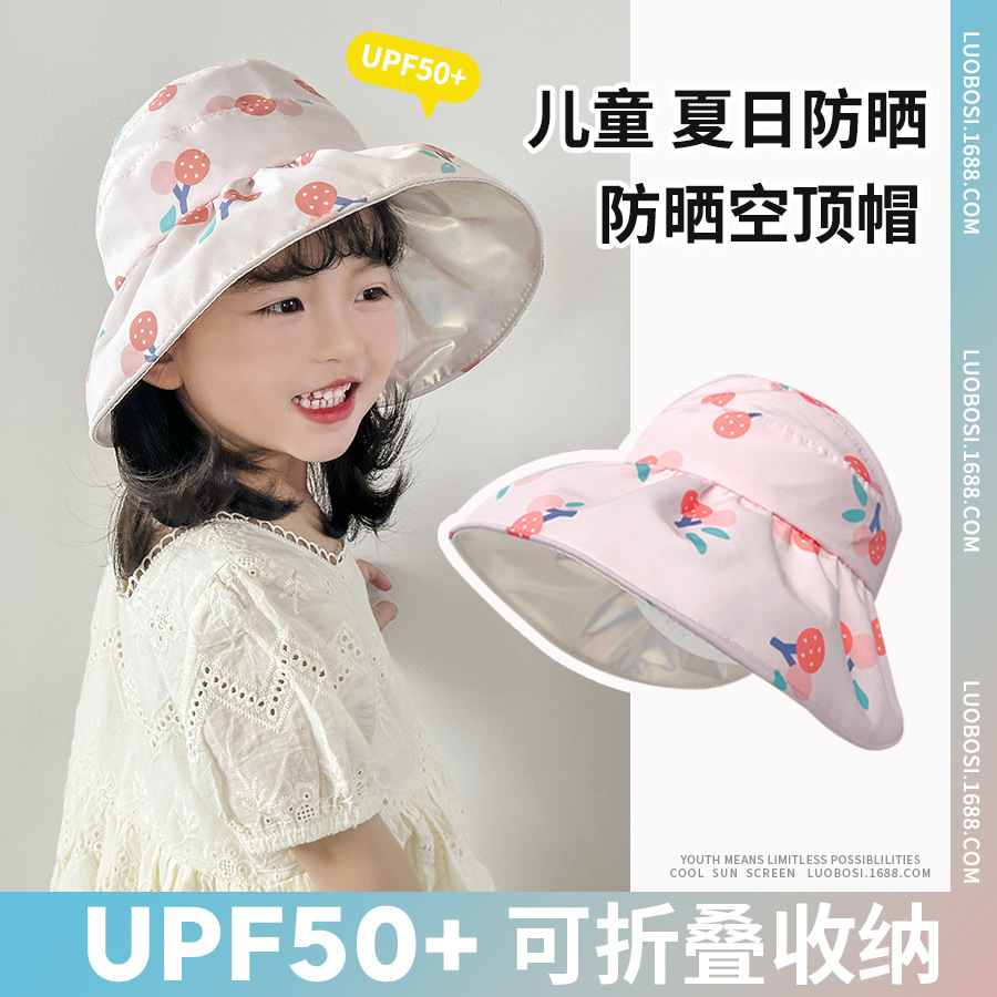 Children's sun hat girls can tie ponytail summer sun hat big brim UV protection baby empty top sun hat