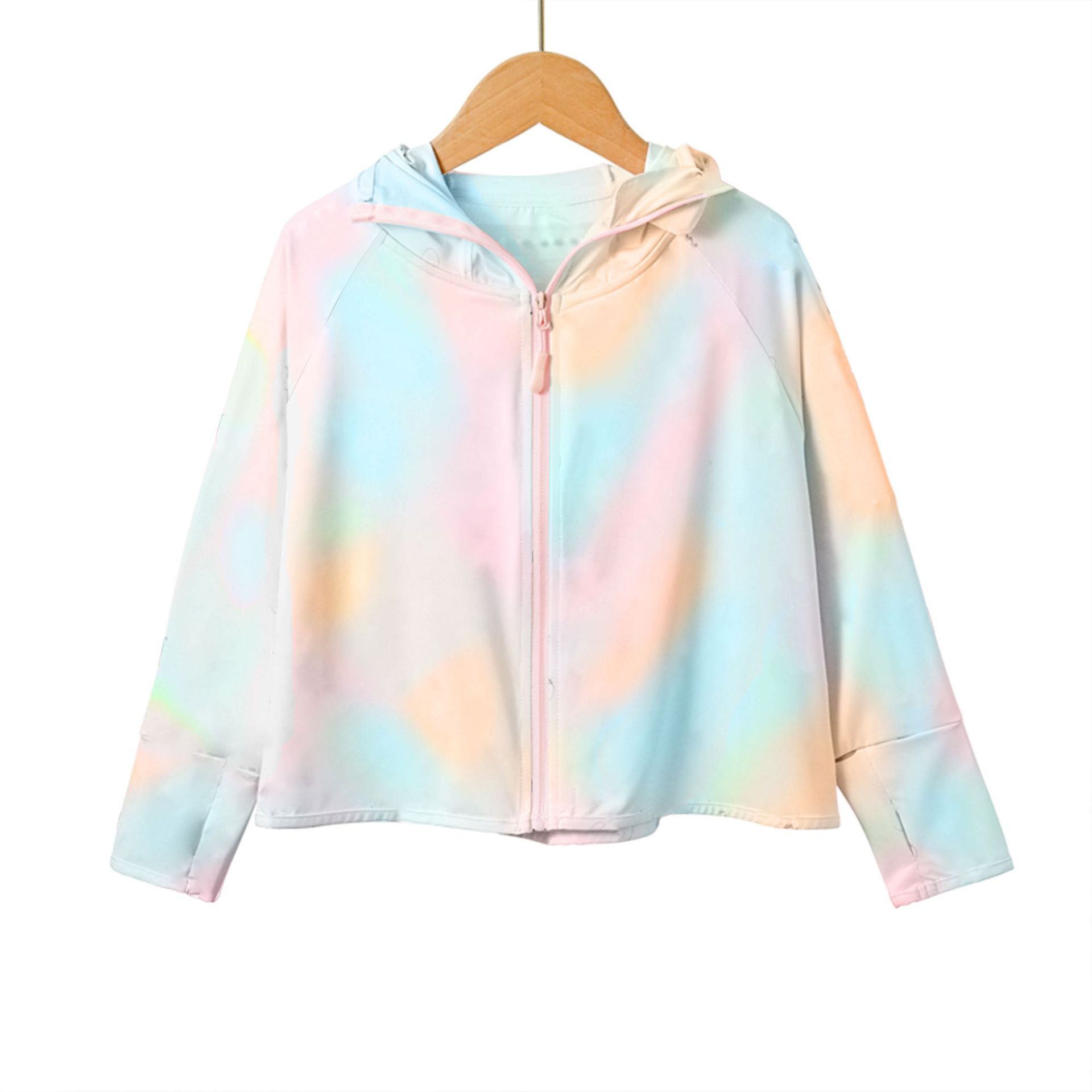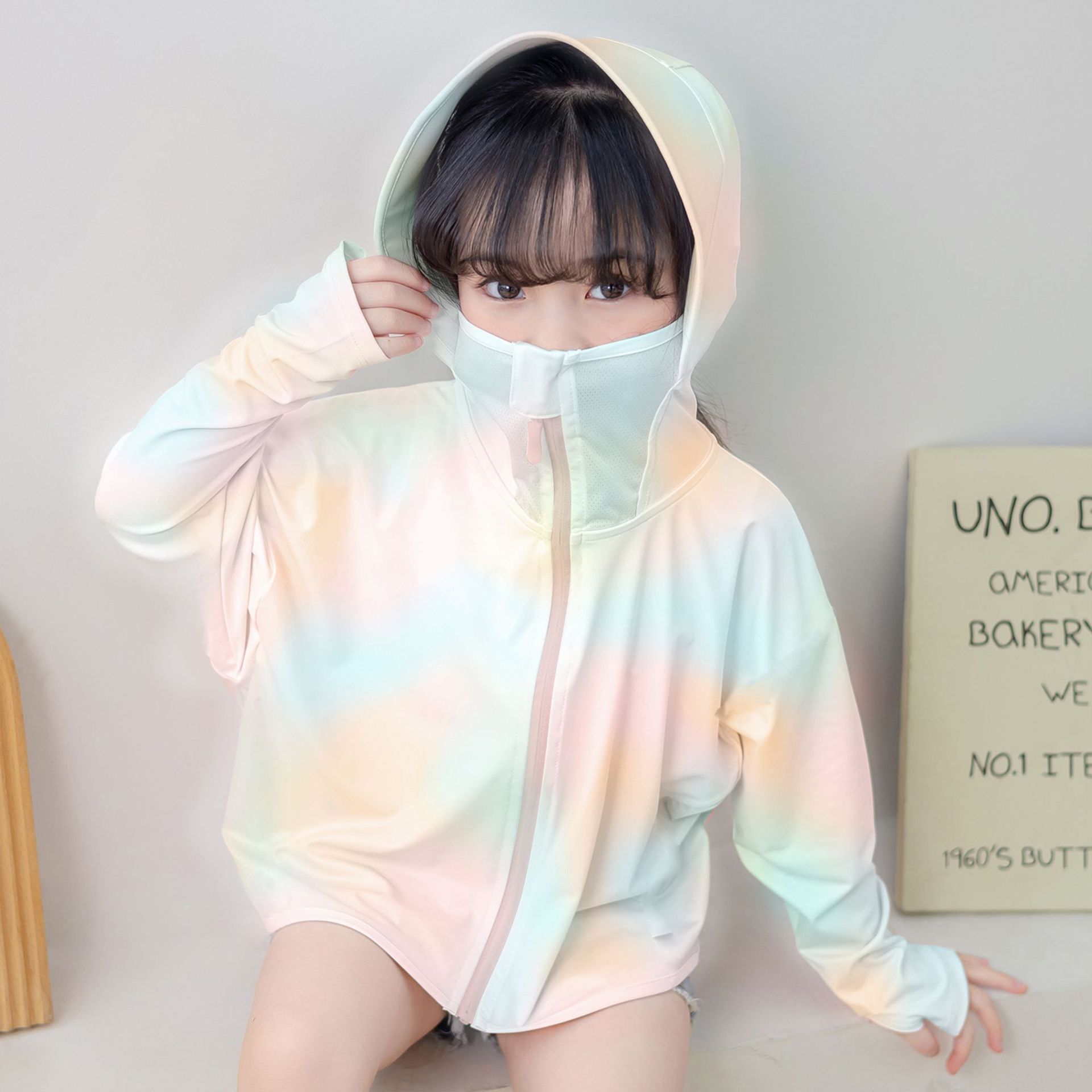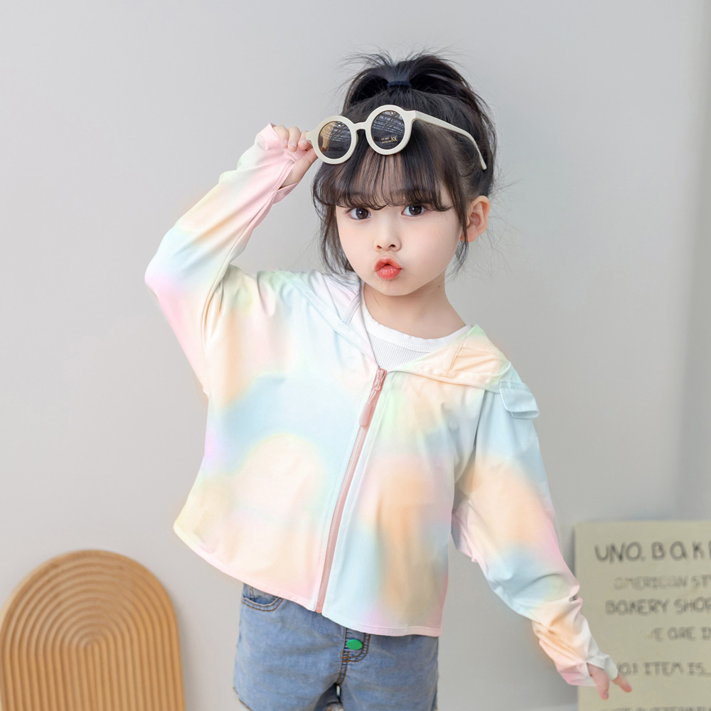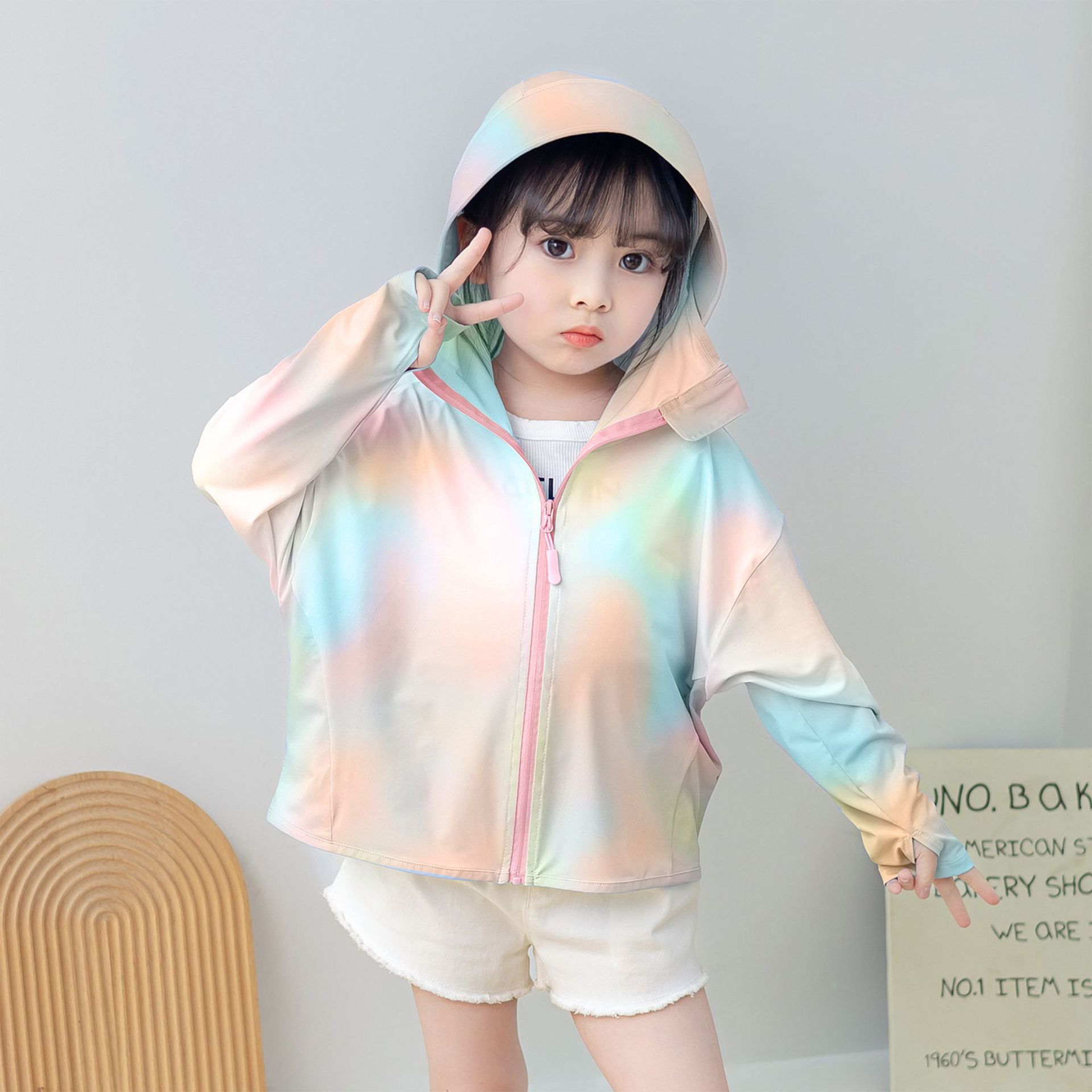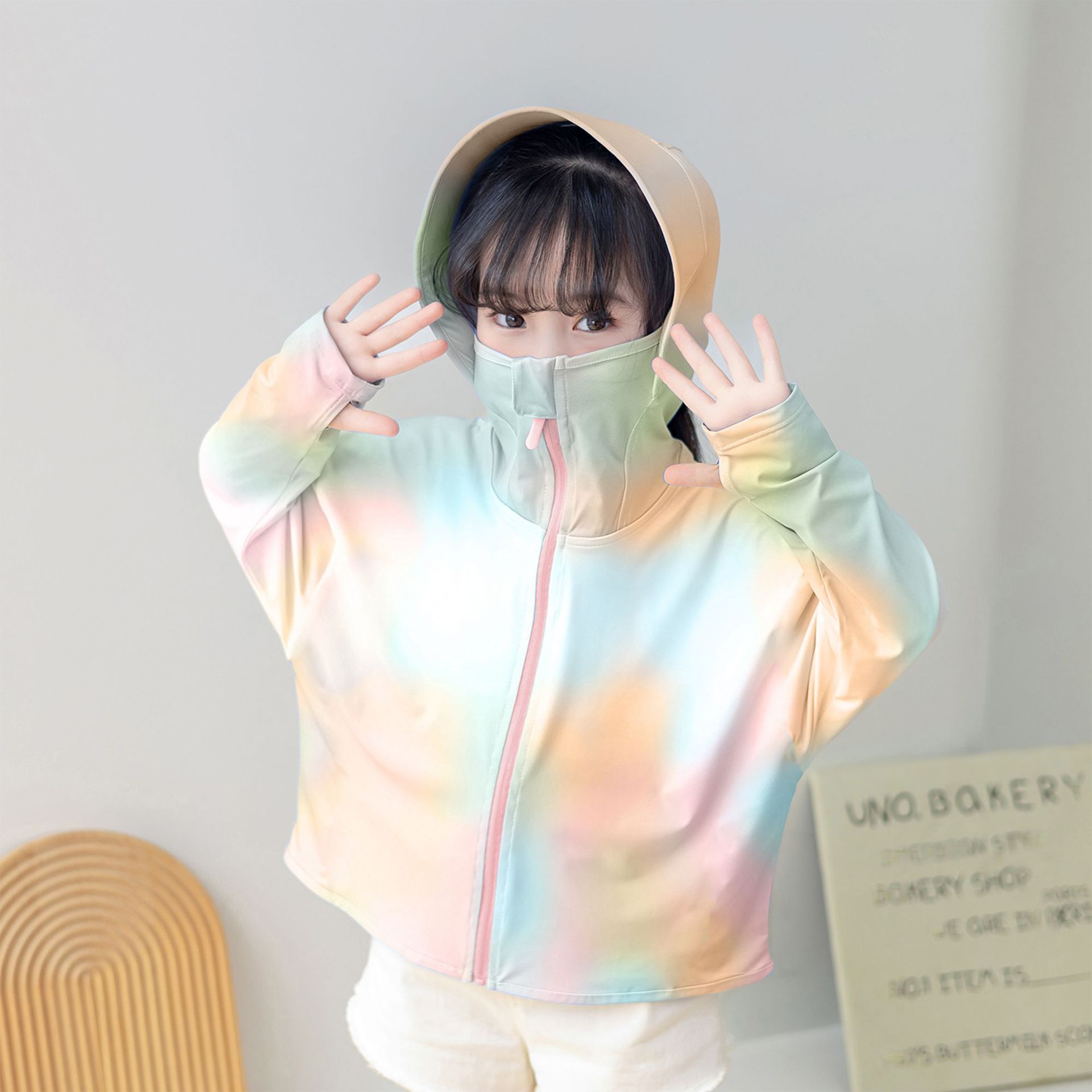 Children's Sunscreen Clothing Girls' Colorful Sunscreen Clothing UV Protection for Boys Summer Ice Silk Lightweight Skin Clothing Pocket Canopy