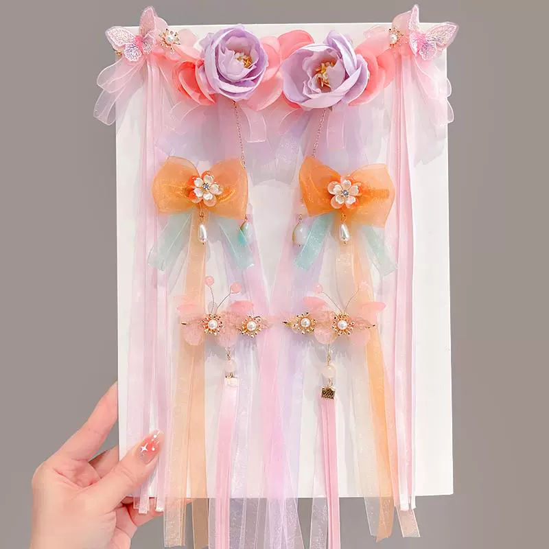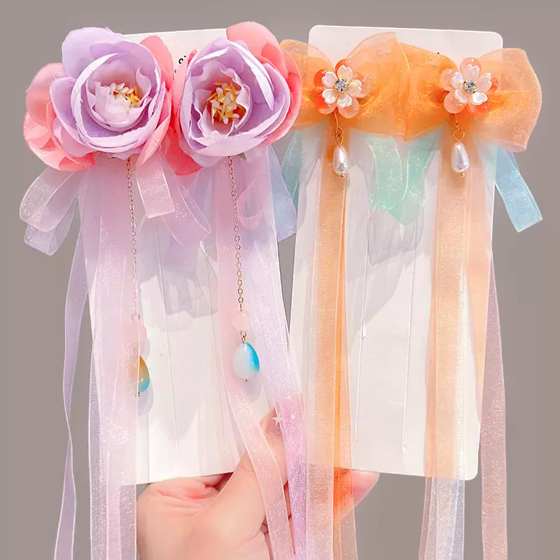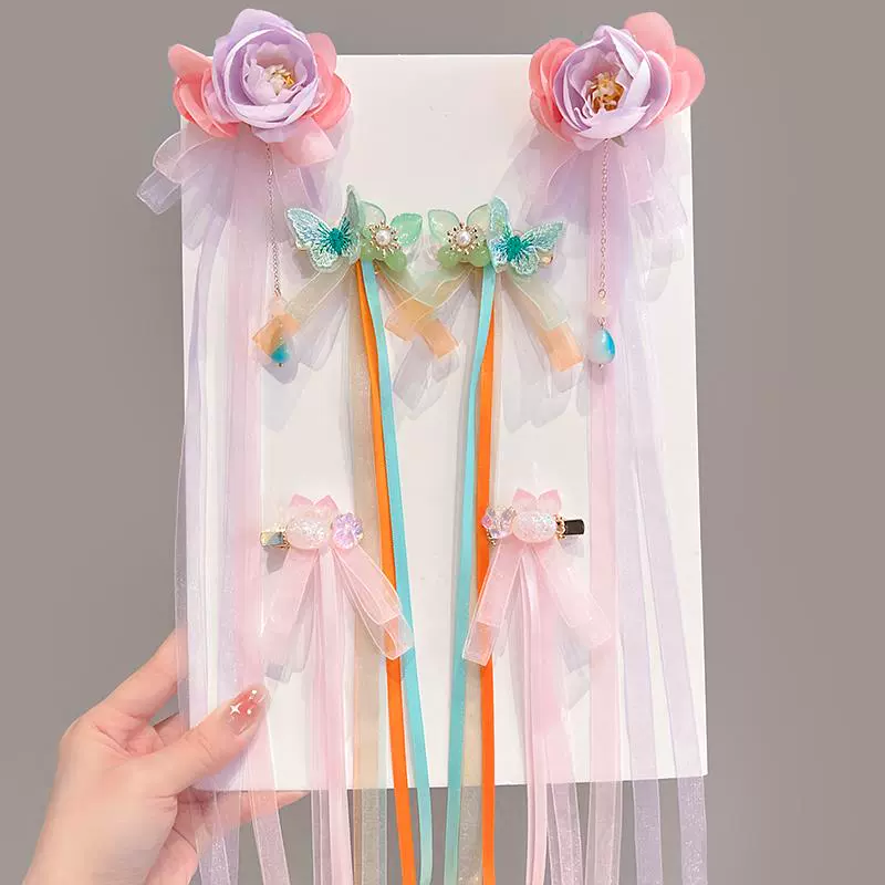 | nameOriginal | Children's super fairy Hanfu headwear ancient style hairpin little girl Chinese style hairpin girls ancient costume step wave ribbon head flower |