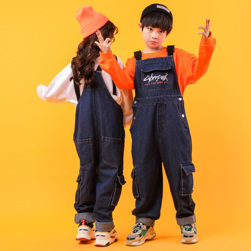 | nameOriginal | Children's suspenders costume girls jazz dance suit hip-hop loose denim baggy pants boys hip-hop fashion cool |