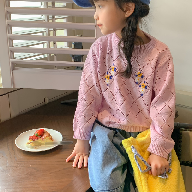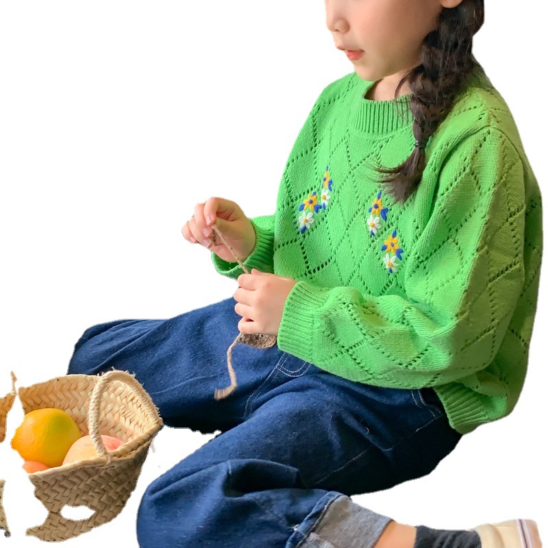 | nameOriginal | Children's Sweater 2023 Autumn Girls' Korean-style Plaid Solid Color Pullover Sweater Children's Embroidered Flower Knitted Jacket |