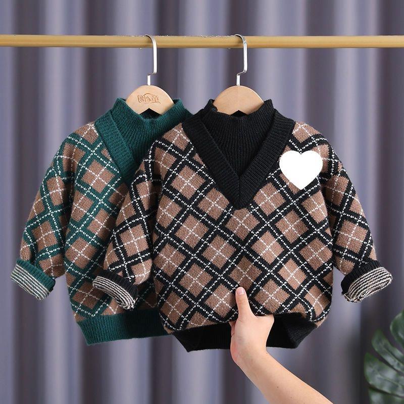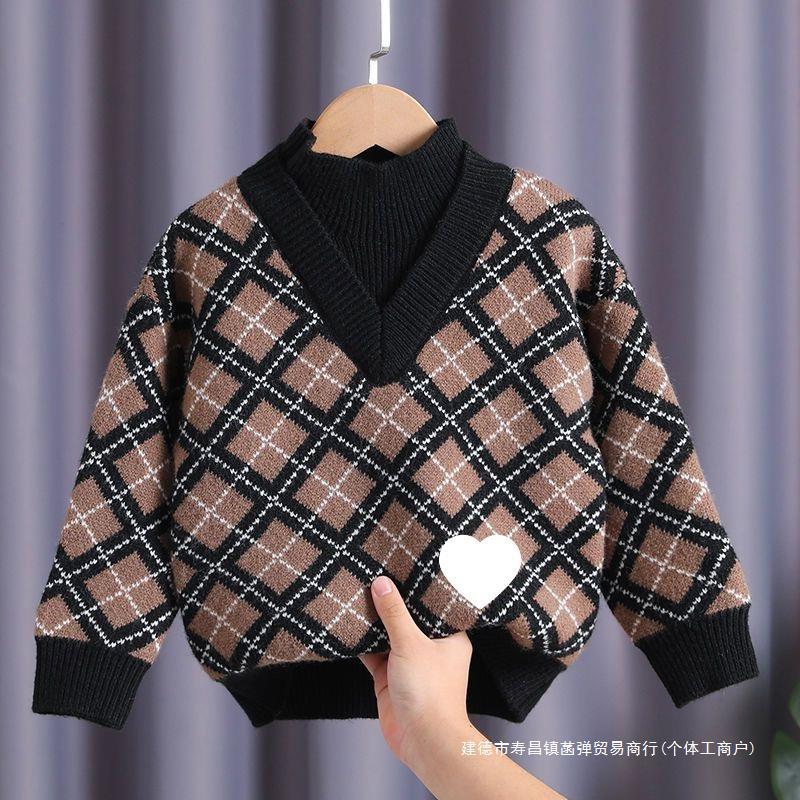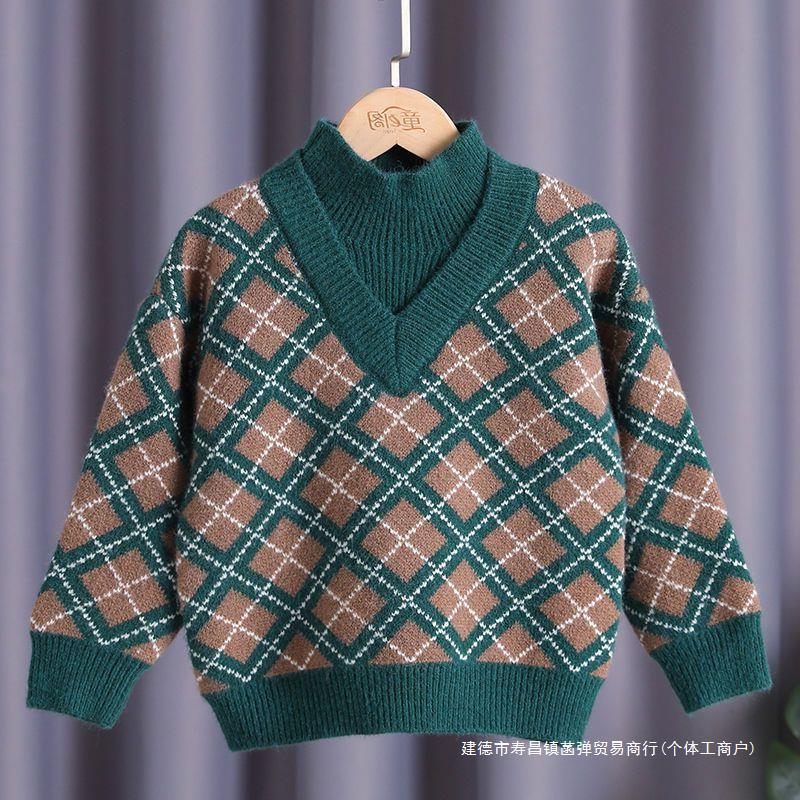 | nameOriginal | Children's Sweater Boy's Autumn and Winter Fake Two-Piece Plaid Knitwear Girl's Western Style Top Children's Thickened Sweater |