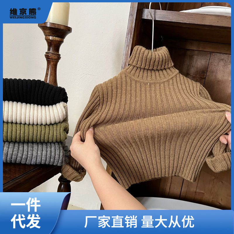 Children's sweater color base 2023 autumn and winter New girls' thickened turtleneck sweater baby warm inner hot