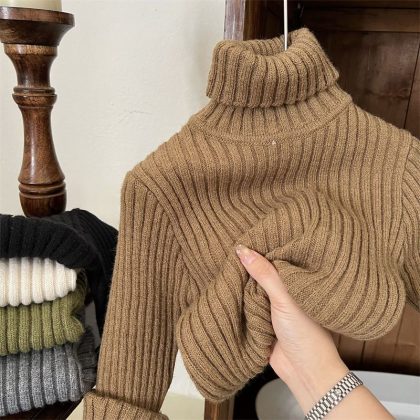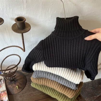 Children’s sweater color base 2023 autumn and winter New girls’ thickened turtleneck sweater baby warm inner hot
