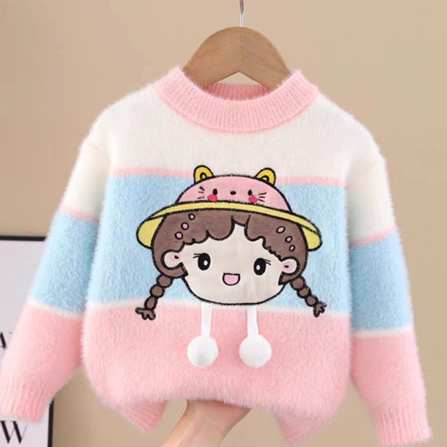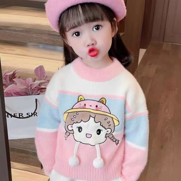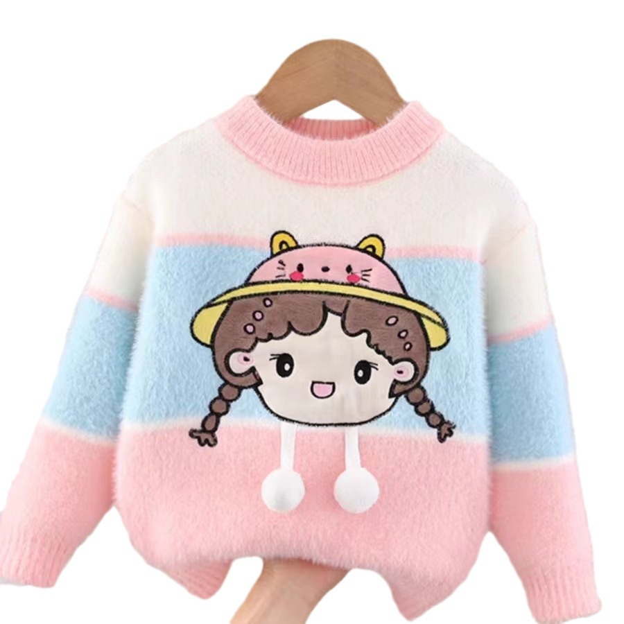 Children’s sweater pullover Cartoon Doll sweater 2023 autumn and winter new female baby color matching long sleeve Western style Korean style