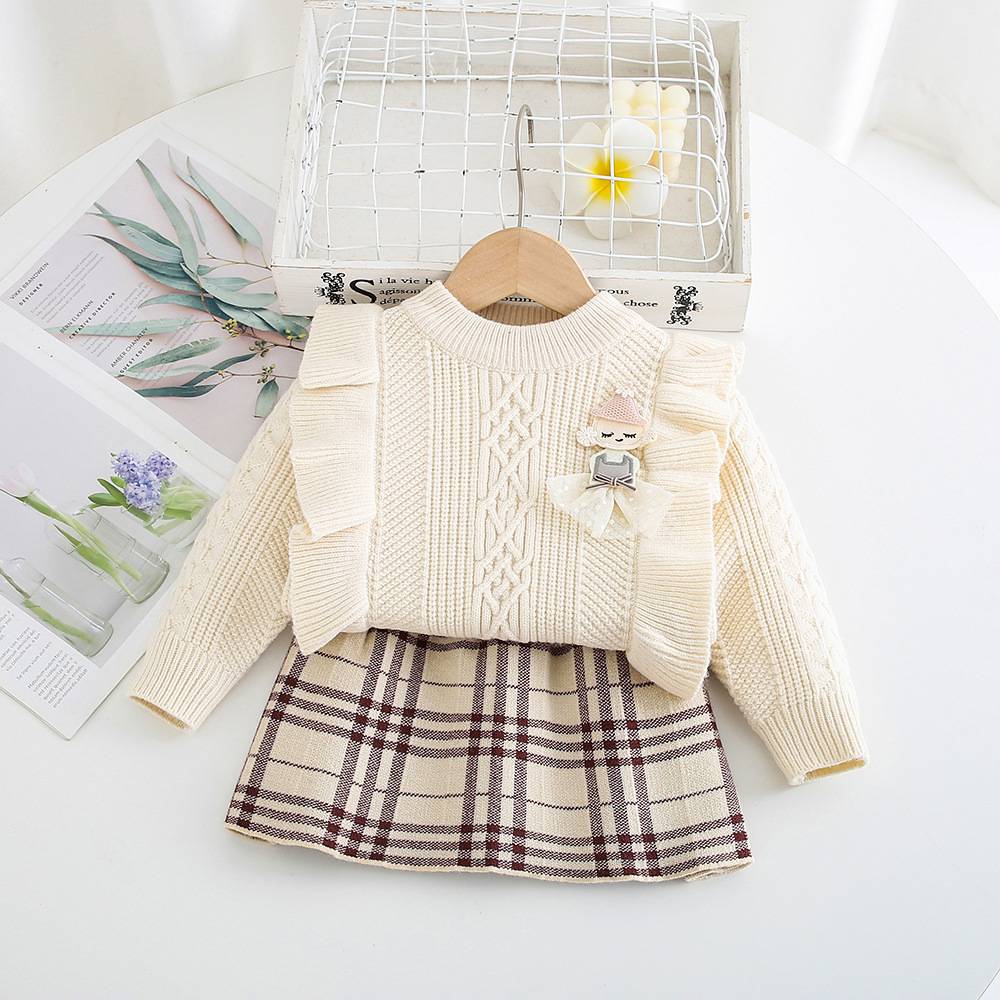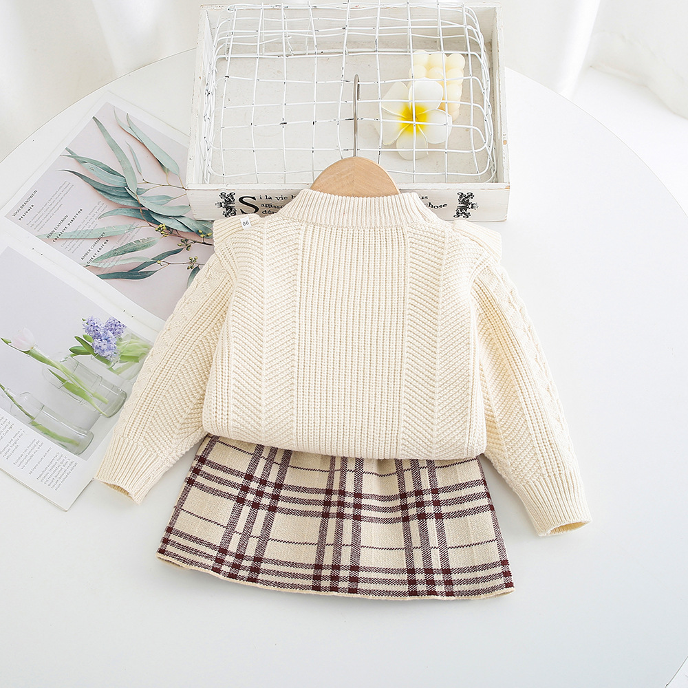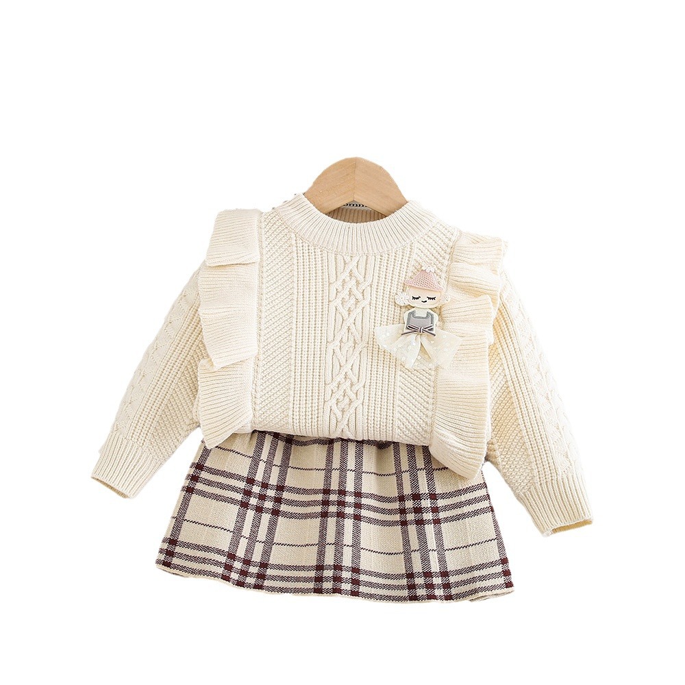Children's sweater skirt solid color sweater plaid skirt female baby autumn and winter New knitted two-piece suit Korean fashion