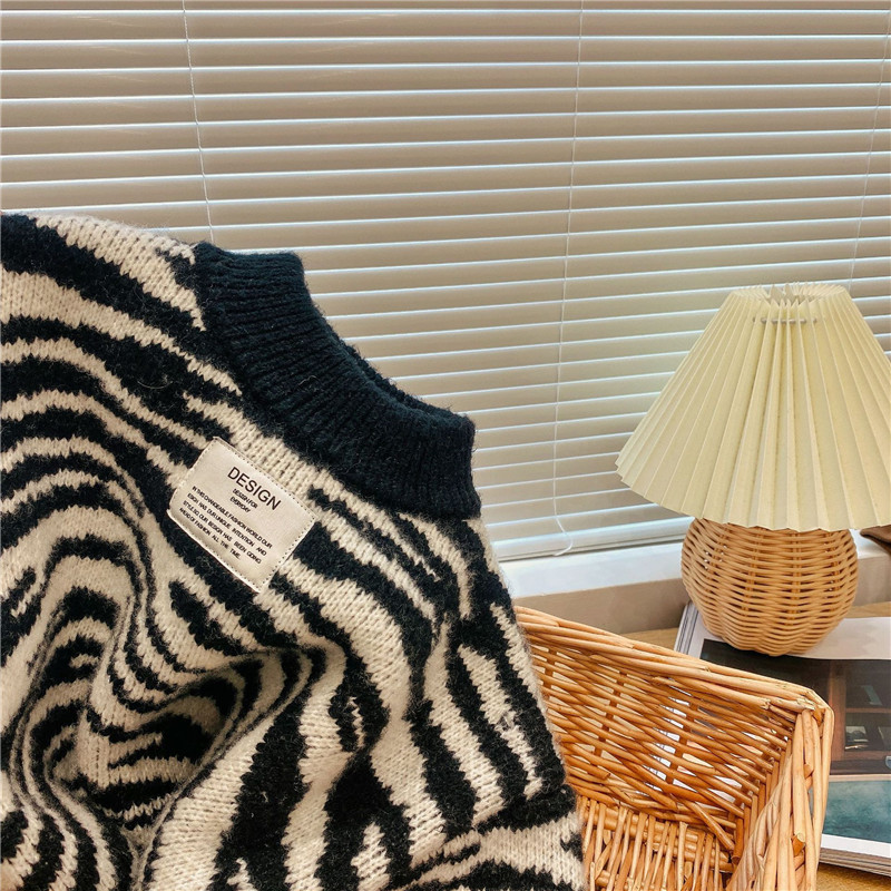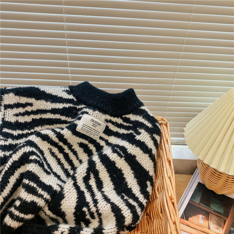 | nameOriginal | Children's sweater spring, autumn and winter new boys and girls zebra pattern sweater baby labeling half turtleneck sweater |