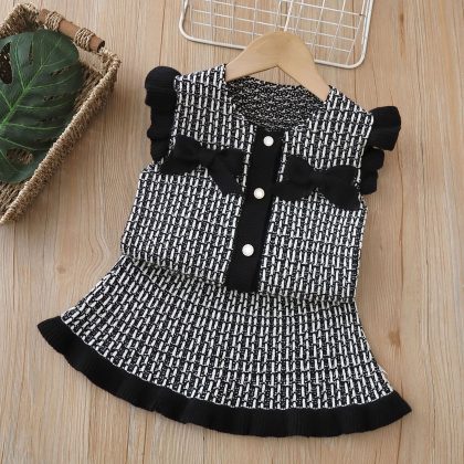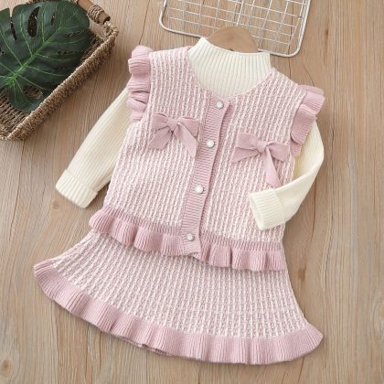 | nameOriginal | Children's Sweater Vest Cardigan 2024 Autumn Baby Girl's Coat Chanel Style suit Girl's Three-piece Set |