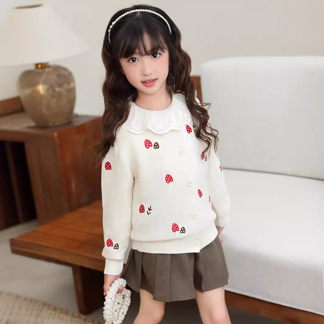 | nameOriginal | Children's sweater wholesale Spring and Autumn New 2024 Korean girls embroidered cute mushroom cotton knitted cardigan top |