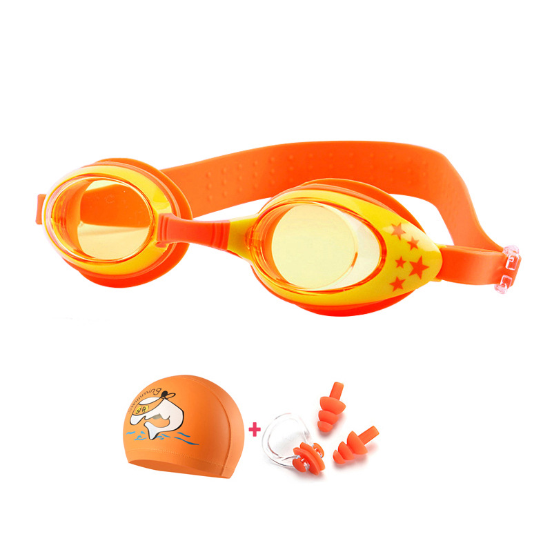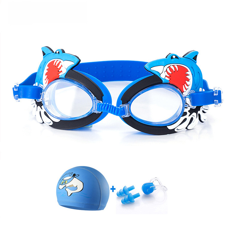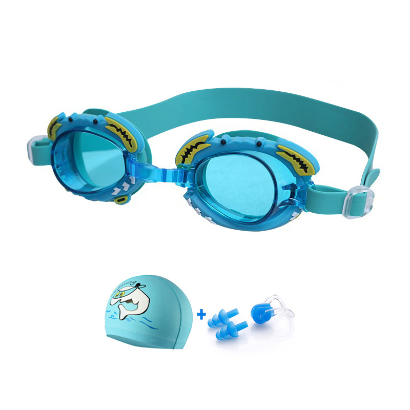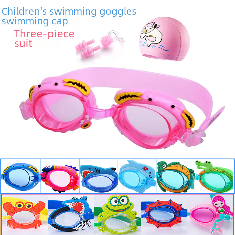 | nameOriginal | Children's swimming glasses equipment three-piece PU swimming cap earplug nose clip children's cartoon anti-fog waterproof swimming goggles set |