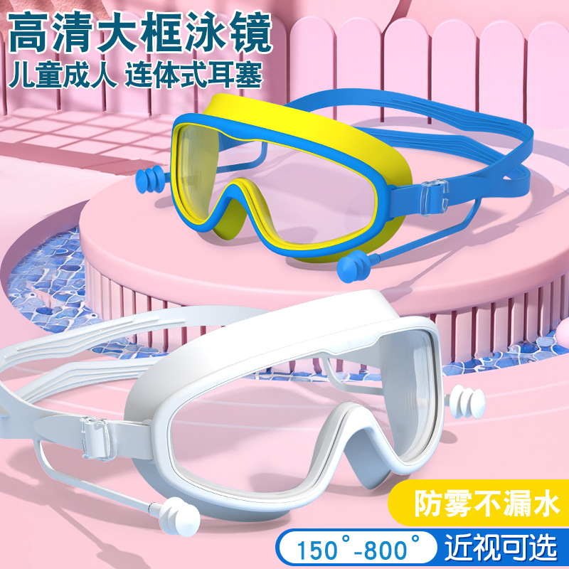 | nameOriginal | Children's swimming goggles waterproof anti-fog HD transparent conjoined earplugs large frame goggles adult universal swimming goggles wholesale |