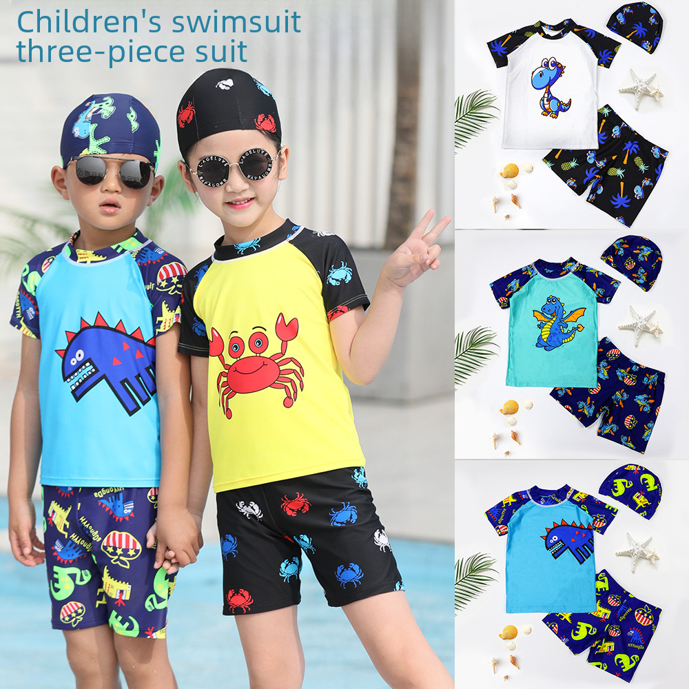 Children’s swimsuit boys and girls split flat corner small and medium-sized children’s cartoon swimsuit boys hot spring sun protection swimming set wholesale
