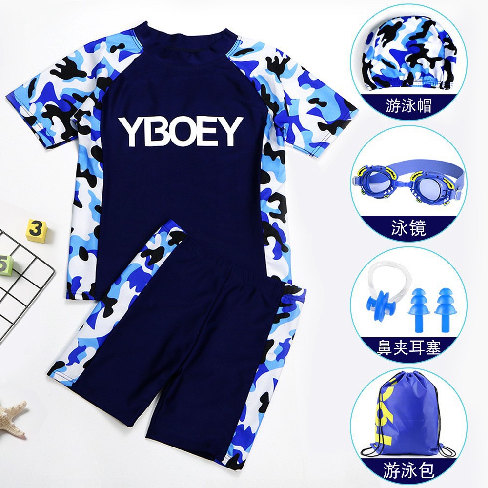 | nameOriginal | Children's swimsuit boys' split polyester quick-drying comfortable boys' swimming training boys' swimsuit swimming goggles full set |
