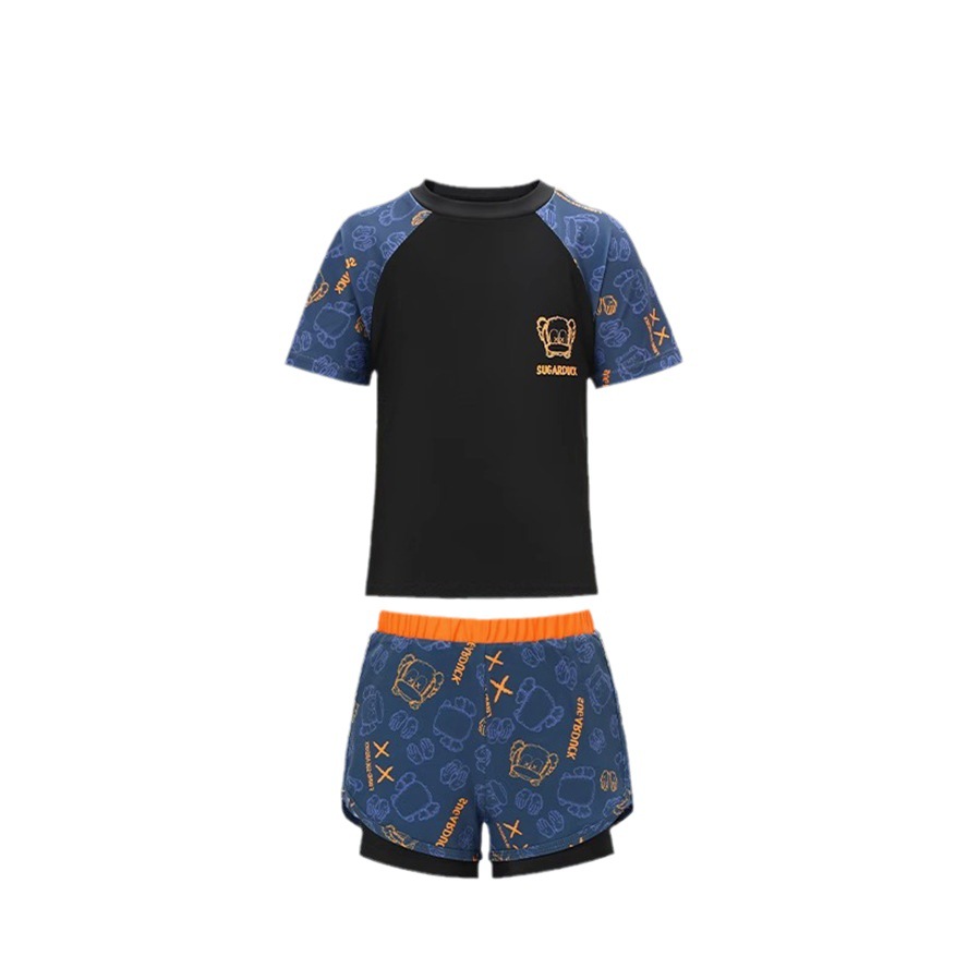 Children's swimsuit boys' two-piece boys' swimsuit middle and large teenagers summer 2023 new double-layer swimming trunks suit