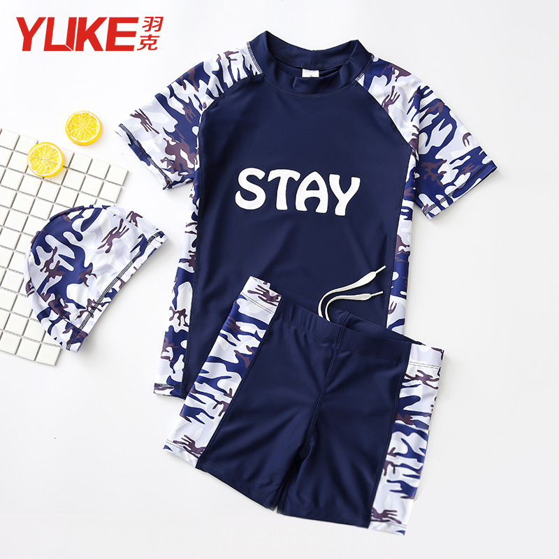 | nameOriginal | Children's swimsuit medium and large boys two-piece swimming trunks suit boys plus size swimsuit teenagers sun protection swimsuit |