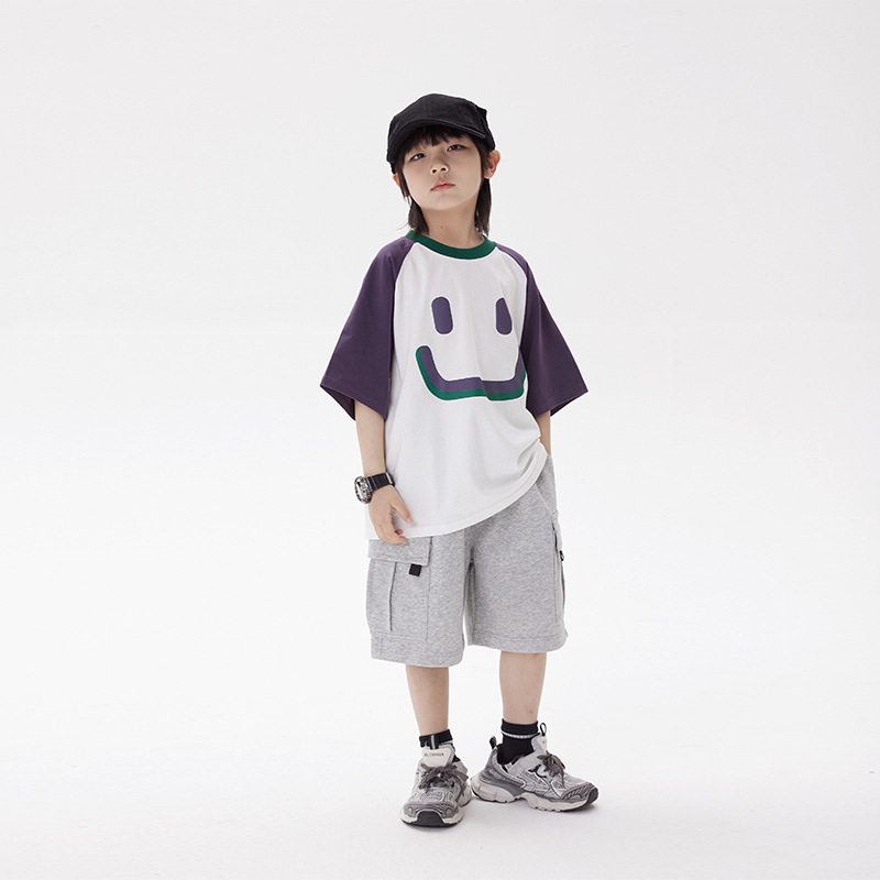 | nameOriginal | Children's T-shirt 2024 summer new arrival boys casual raglan short sleeve fashionable cartoon printed top |