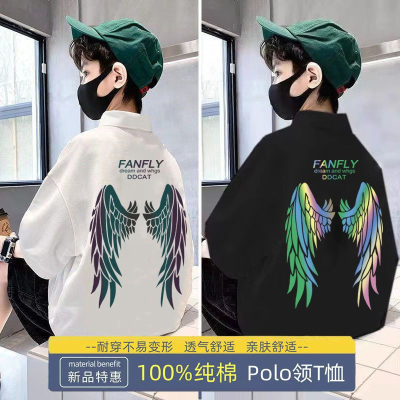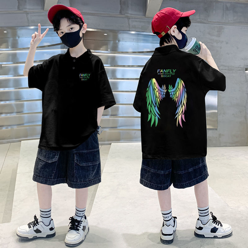 Children’s T-shirt Polo collar men’s 2024 New Youth summer loose handsome American pullover cotton t boy