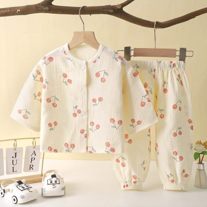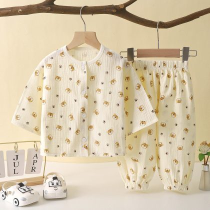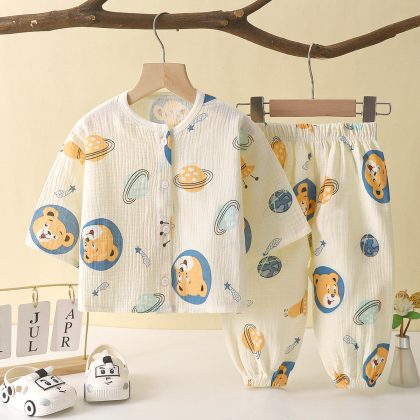 | nameOriginal | Children's thin double-layer cotton gauze boys pajamas summer girls' home clothes boys baby long sleeve bloomers wholesale |