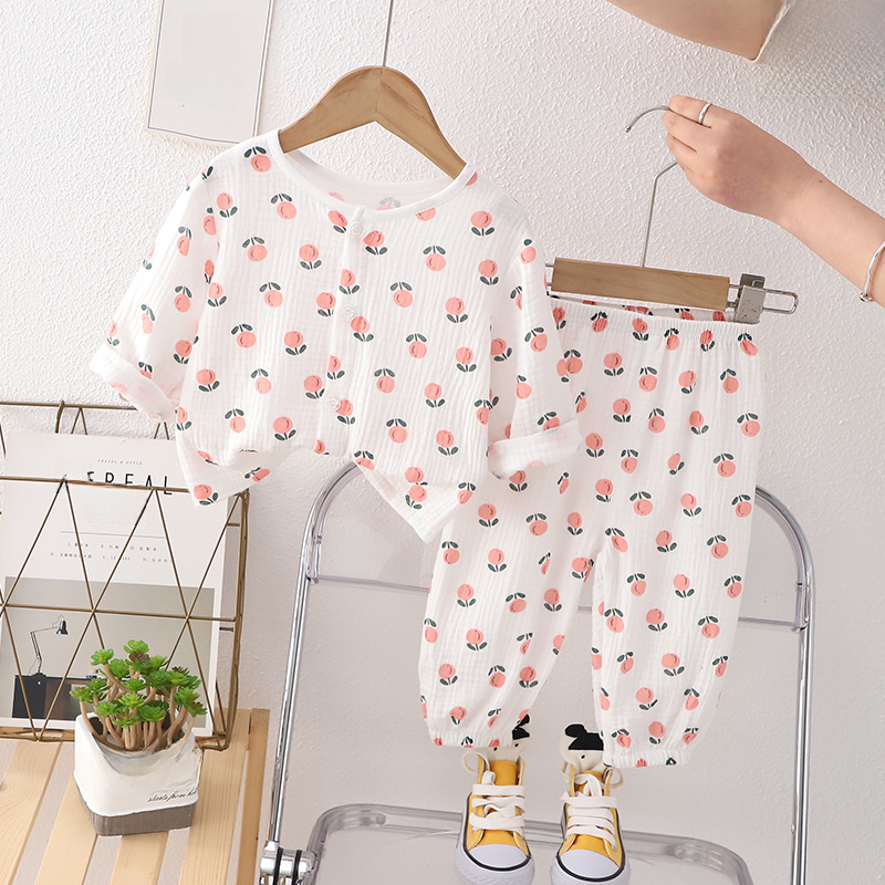 | nameOriginal | Children's Thin Double-Layer Cotton Gauze Pajamas Baby's Summer Girls' Home Clothes Long-Sleeved Bloomers Set |