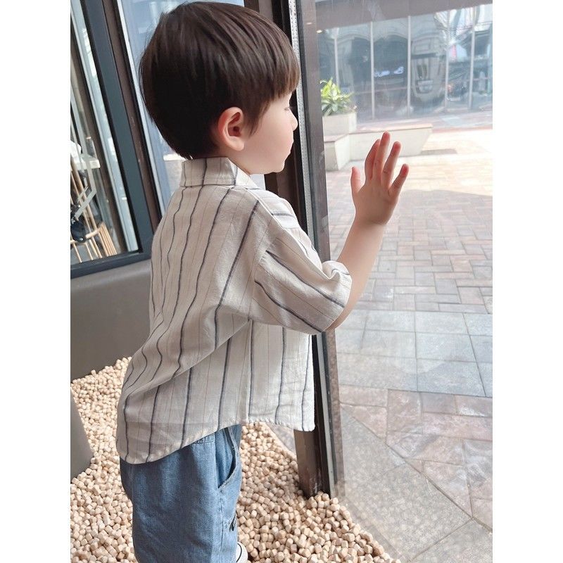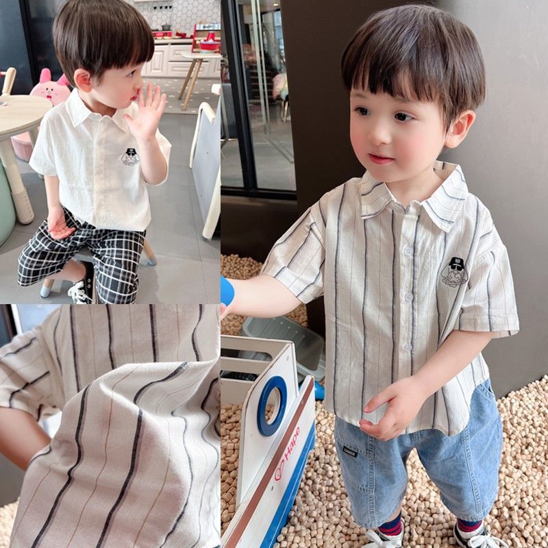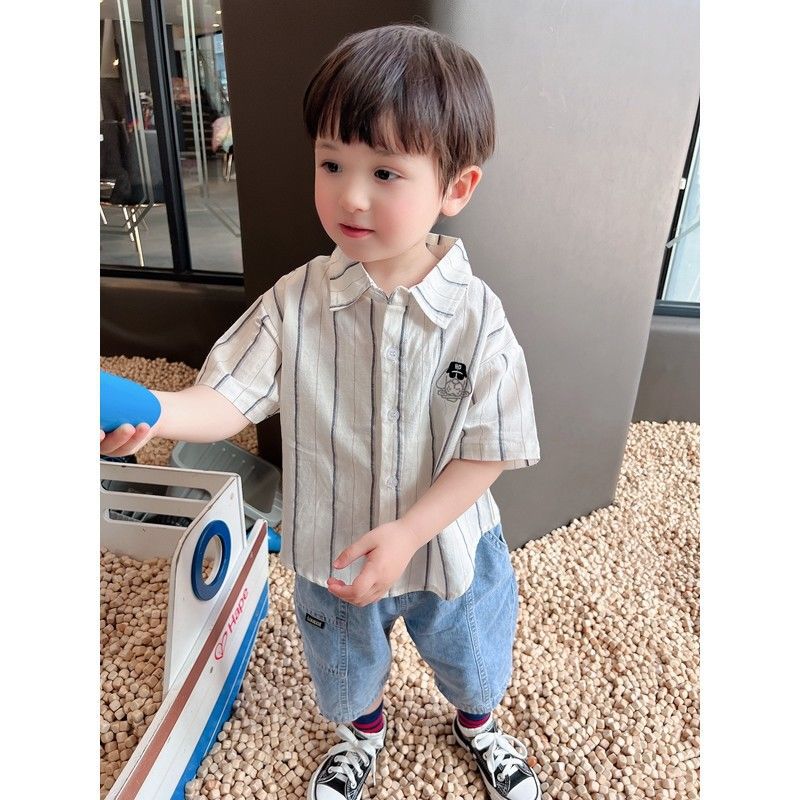 | nameOriginal | Children's thin short-sleeved boys shirt 2024 new short-sleeved shirt small and medium-sized children's baby summer striped shirt |