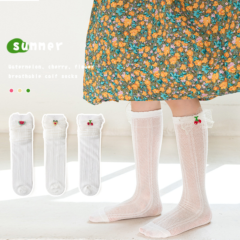 Children's thin socks girls Korean style stockings summer thin cotton socks princess socks summer mesh mesh calf socks