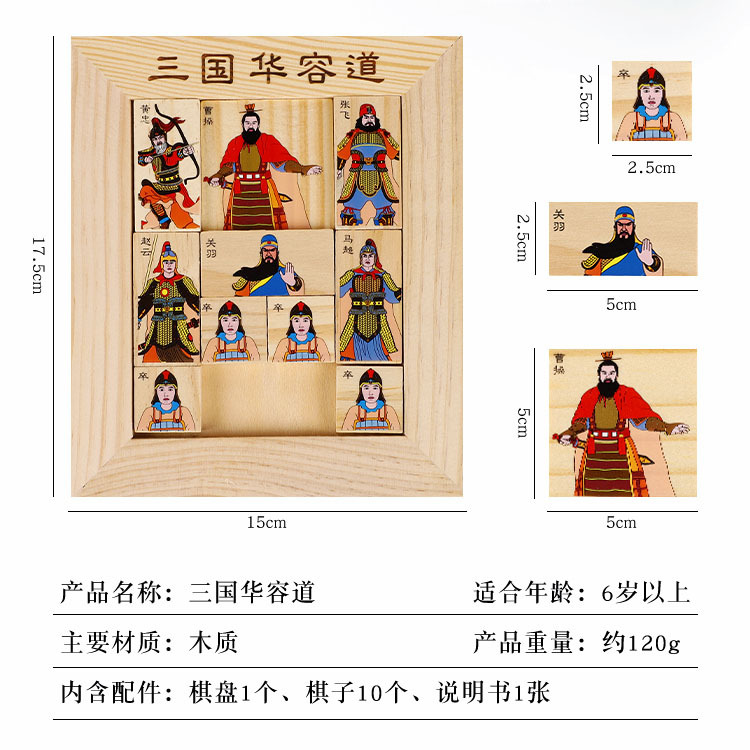 | nameOriginal | Children's Three Kingdoms Huarong Road intelligence clearance toys wooden intelligence magic board problem solving slider game sliding puzzle |