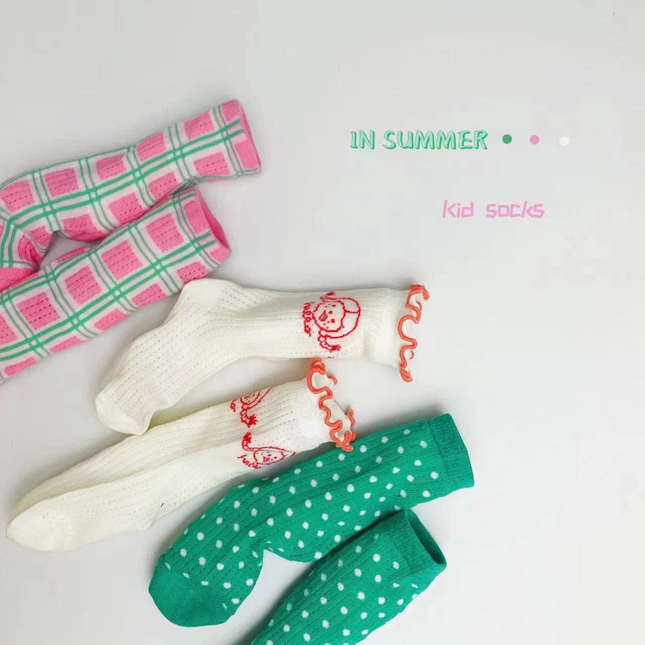 | nameOriginal | Children's tide socks socks wholesale 2024 spring and summer thin rainbow mesh socks small wave point amusement park girls socks |
