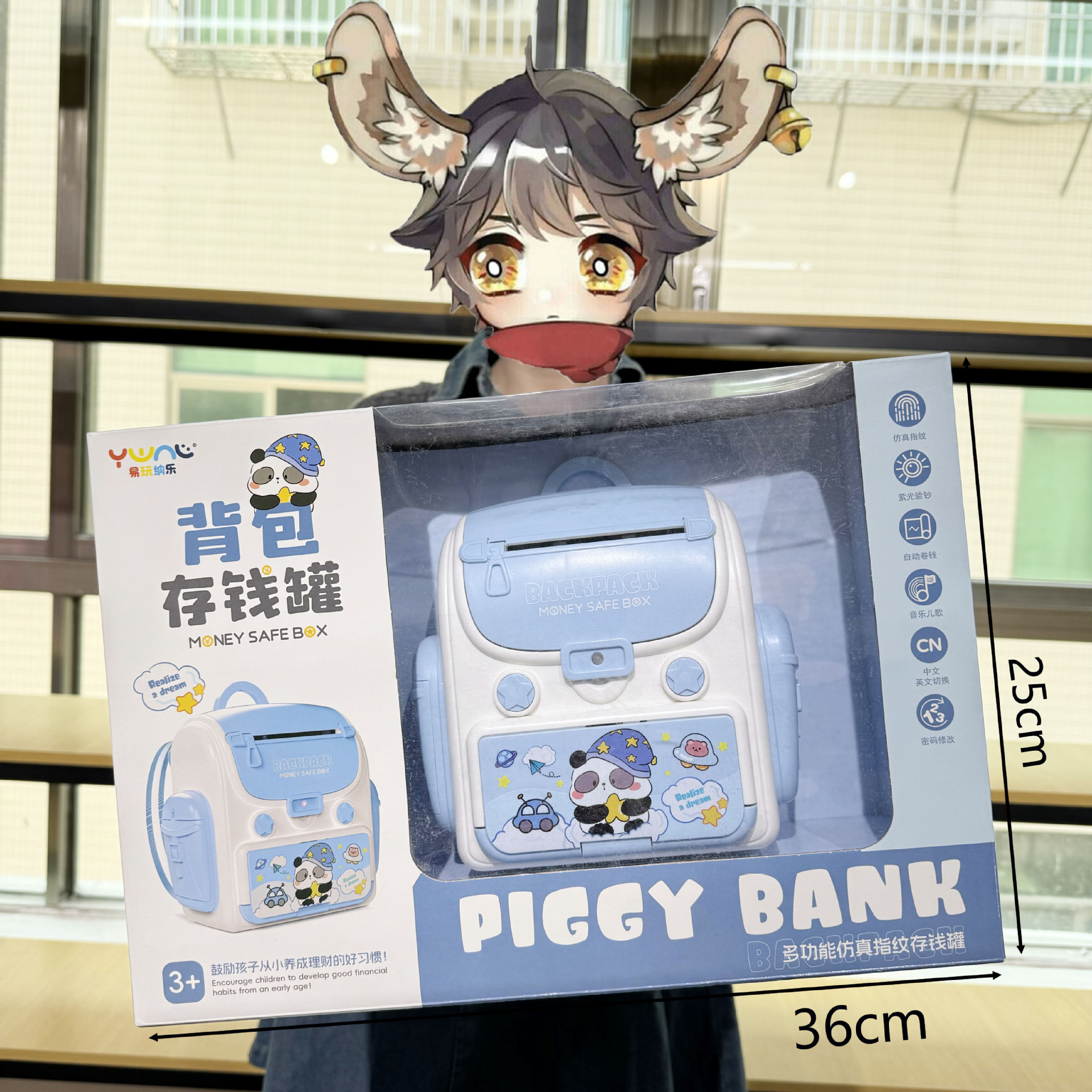 Children’s Toy House Bus Piggy Bank Automatic Money Saving Backpack Fingerprint Sensing Voice Password Box Boys Girls