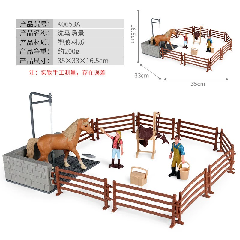 | nameOriginal | Children's toy simulation animal model Chollima static mannequin horse washing scene sand table matching set large stable |