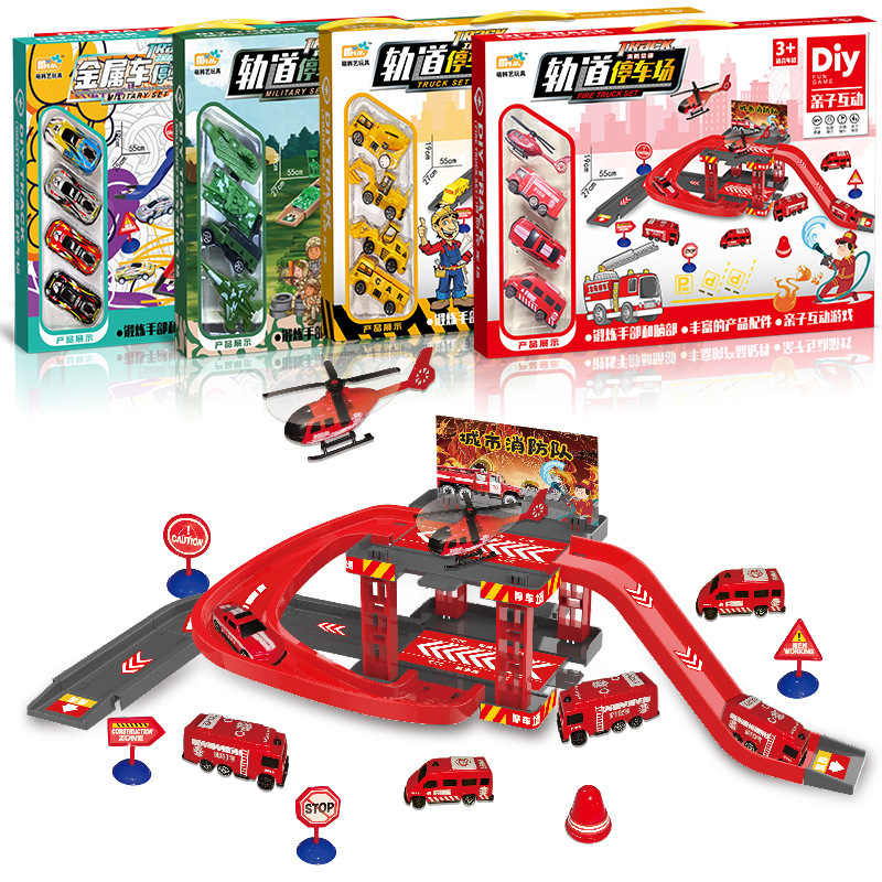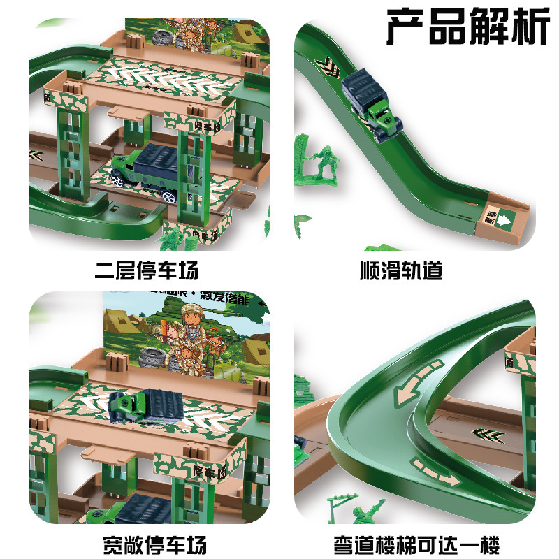 | nameOriginal | Children's toys DIY rail car boy military engineering back car road sign combination parking lot toy set box |