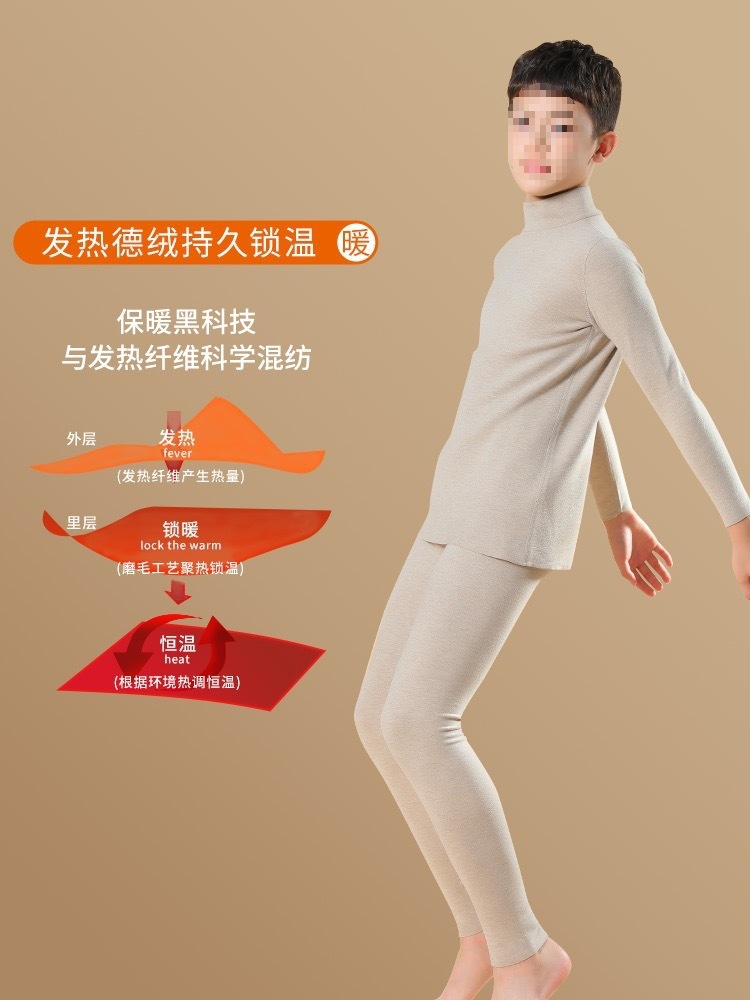 | nameOriginal | Children's turtleneck velvet thermal underwear suit brushed plush autumn and winter middle and big children's autumn clothes long pants boys' heating seamless |