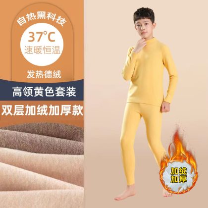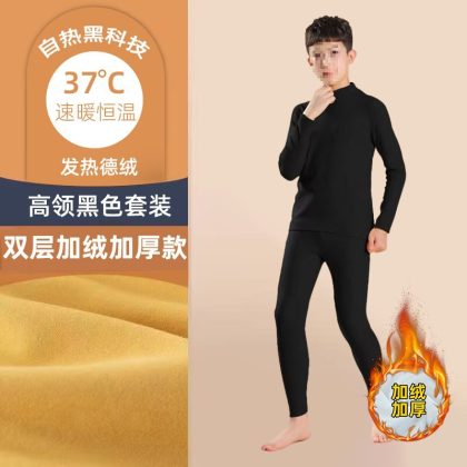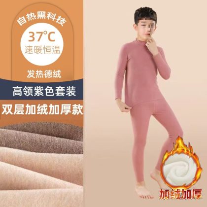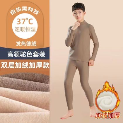 | nameOriginal | Children's turtleneck velvet thermal underwear suit brushed plush autumn and winter middle and big children's autumn clothes long pants boys' heating seamless |