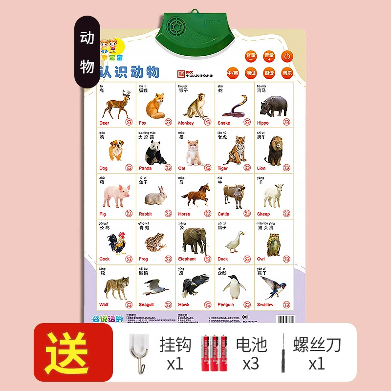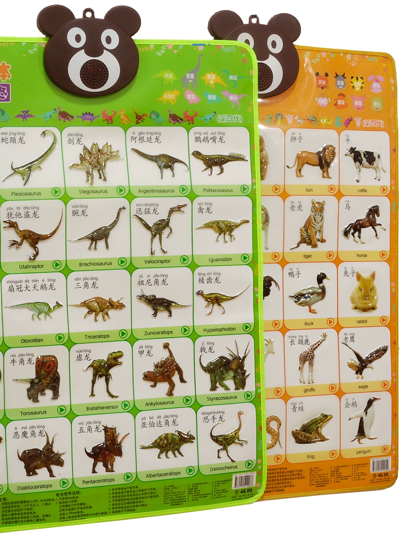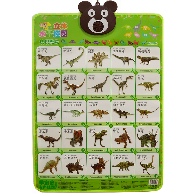Children's understanding of animals, dinosaur world, toys, baby reading audio flipchart cards, Jurassic Ankylosaurus for girls and boys