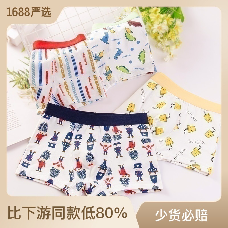 | nameOriginal | Children's Underwear Boys' Fine Shuttle Cotton Boxer Underwear for Middle and Large Children and Students Boys' Four-Corner Shorts Head Boys' Underwear |