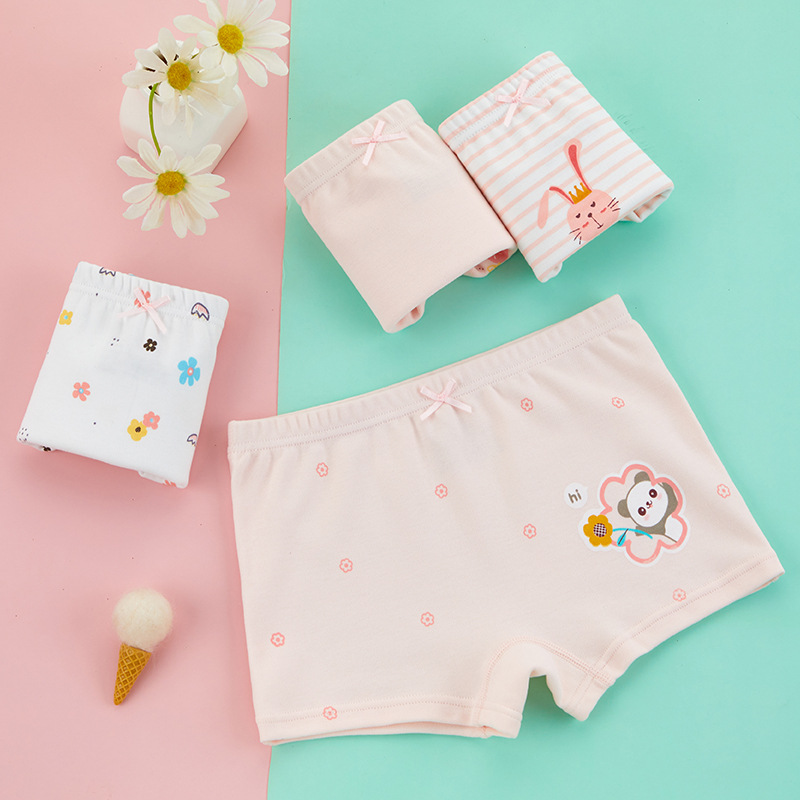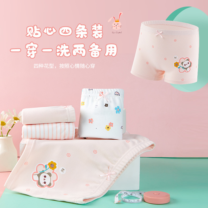 Children’s Underwear Girls’ Cotton Boxer Four Corner Small and Medium-sized Children’s 100 Cotton Non-PP Baby Female Shorts Bacteriostasis