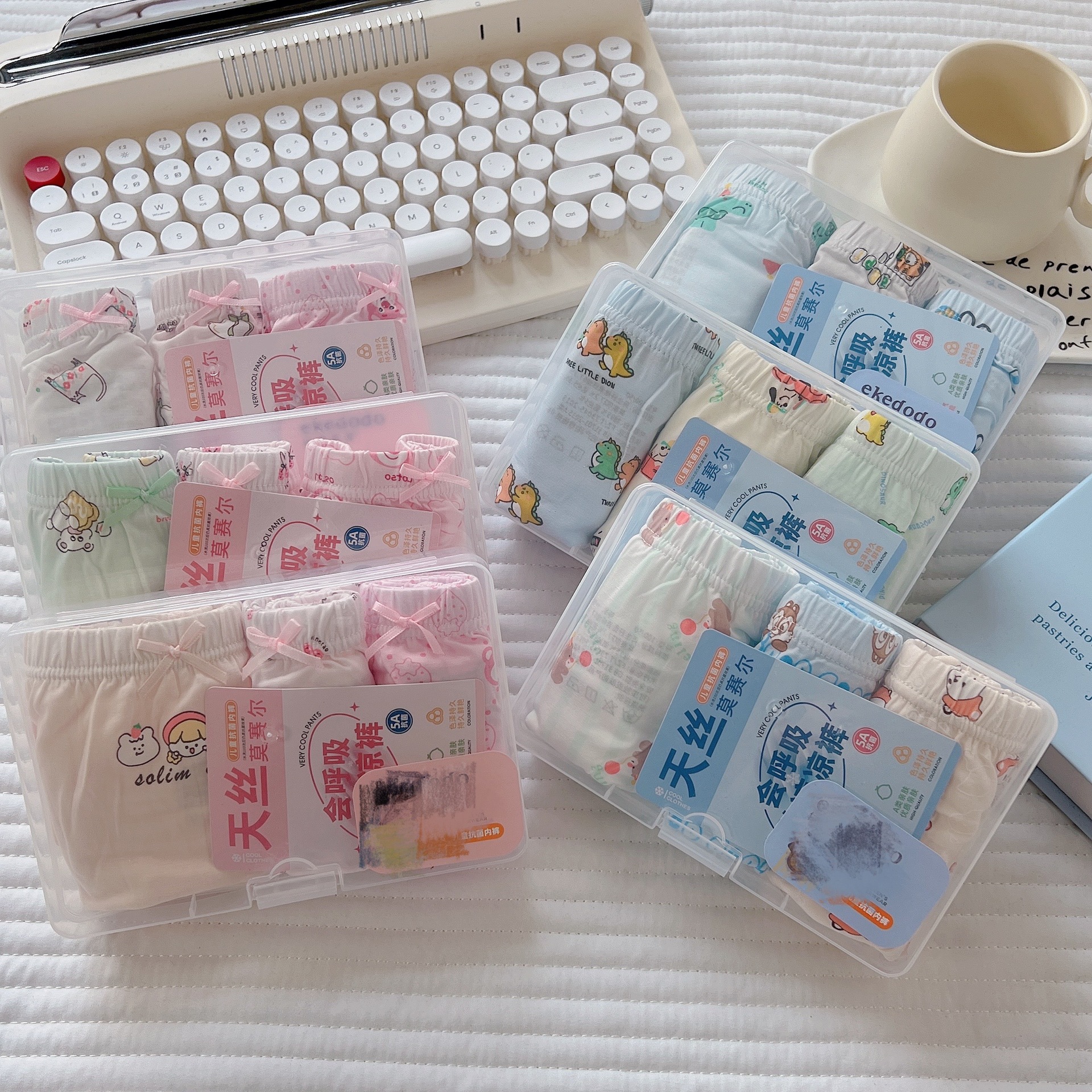 Children’s underwear Tencel Mossel printed men’s and women’s Bento Box 3 pack Korean style children’s boxer briefs