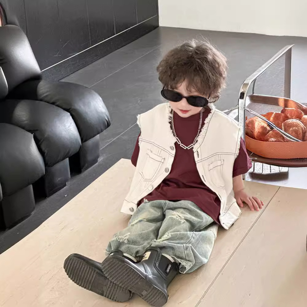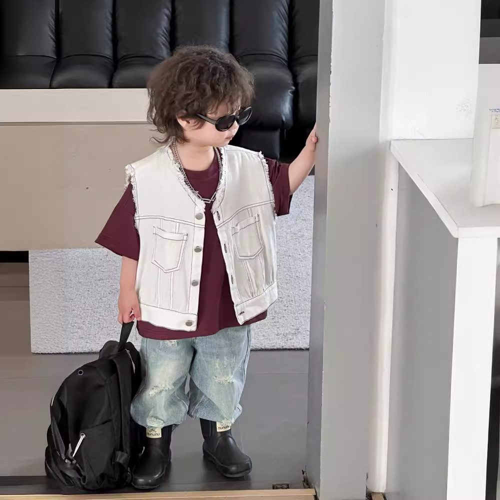 | nameOriginal | Children's vest 2024 spring Boys' new bright line Burr vest children's all-match solid color baby vest |